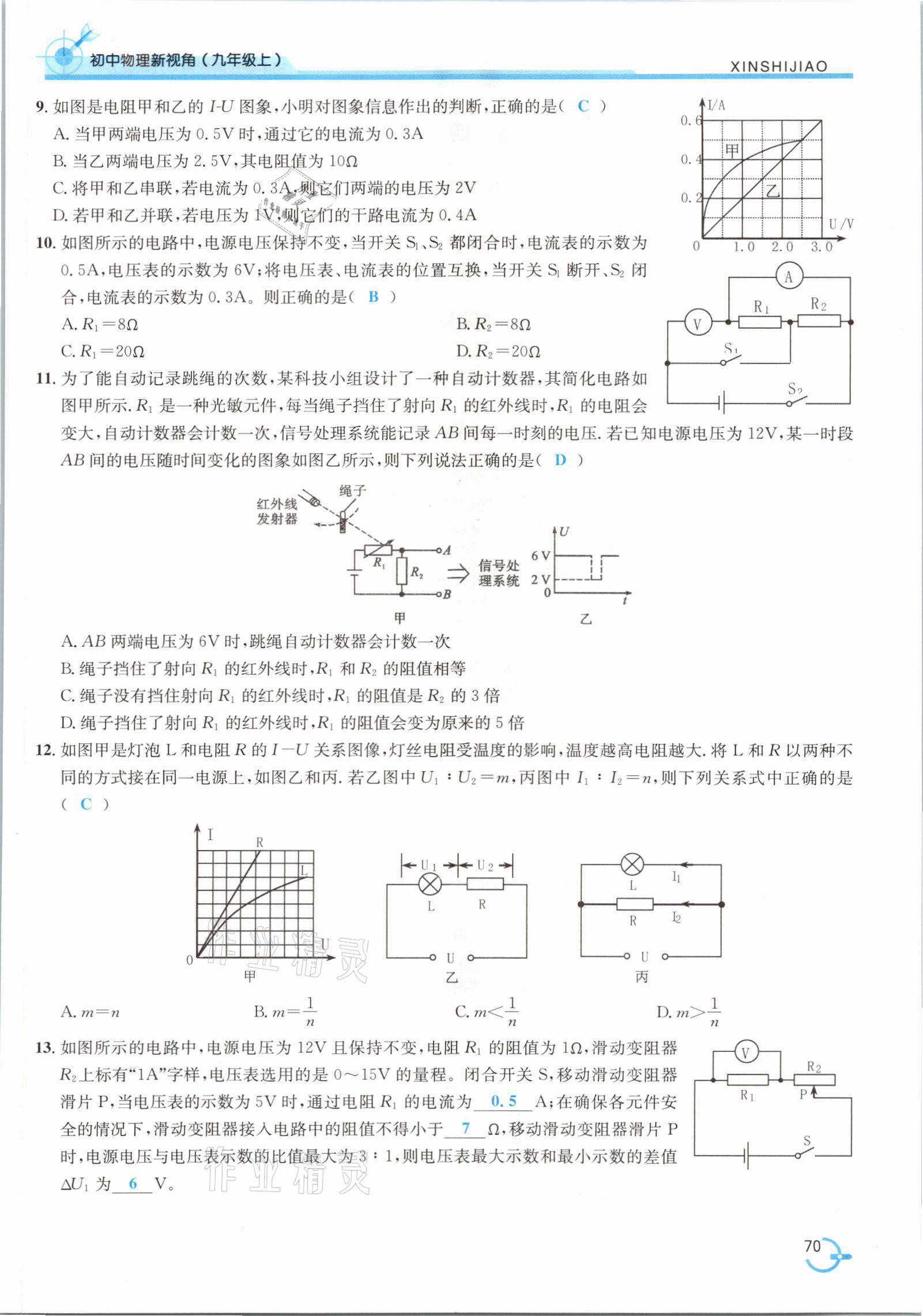 注:目前有些书本章节名称可能整理的还不是很完善,但都是按照顺序排列的,请同学们按照顺序仔细查找。练习册 2021年新视角教辅系列丛书九年级物理上册人教版 答案主要是用来给同学们做完题方便对答案用的,请勿直接抄袭。