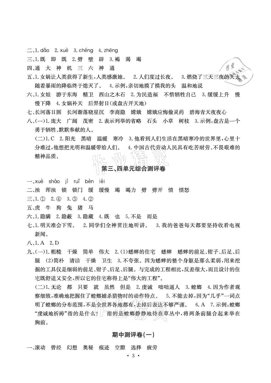 注:目前有些书本章节名称可能整理的还不是很完善,但都是按照顺序排列的,请同学们按照顺序仔细查找。练习册 2021年大显身手素质教育单元测评卷四年级语文上册人教版A版专版 答案主要是用来给同学们做完题方便对答案用的,请勿直接抄袭。