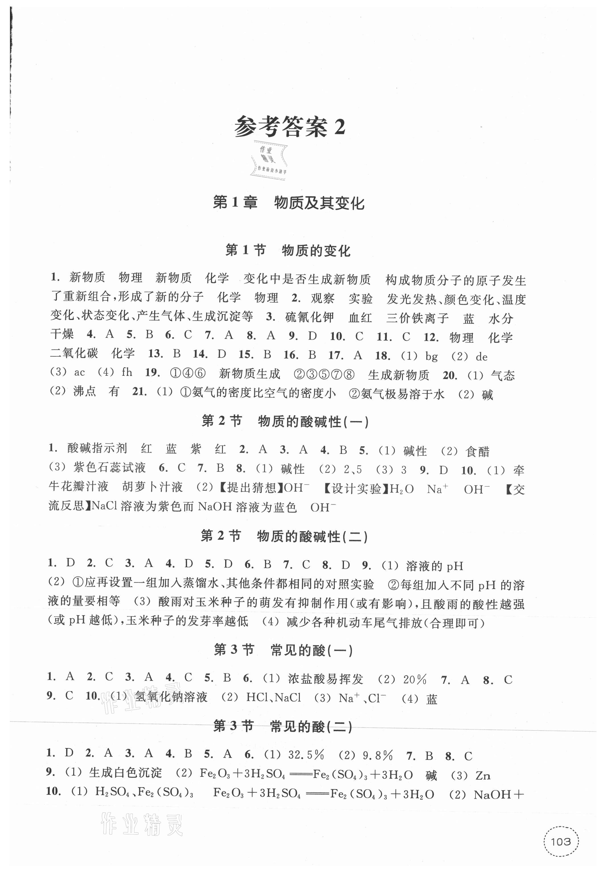 注:目前有些书本章节名称可能整理的还不是很完善,但都是按照顺序排列的,请同学们按照顺序仔细查找。练习册 2021年学习指导与评价九年级科学上册浙教版 答案主要是用来给同学们做完题方便对答案用的,请勿直接抄袭。