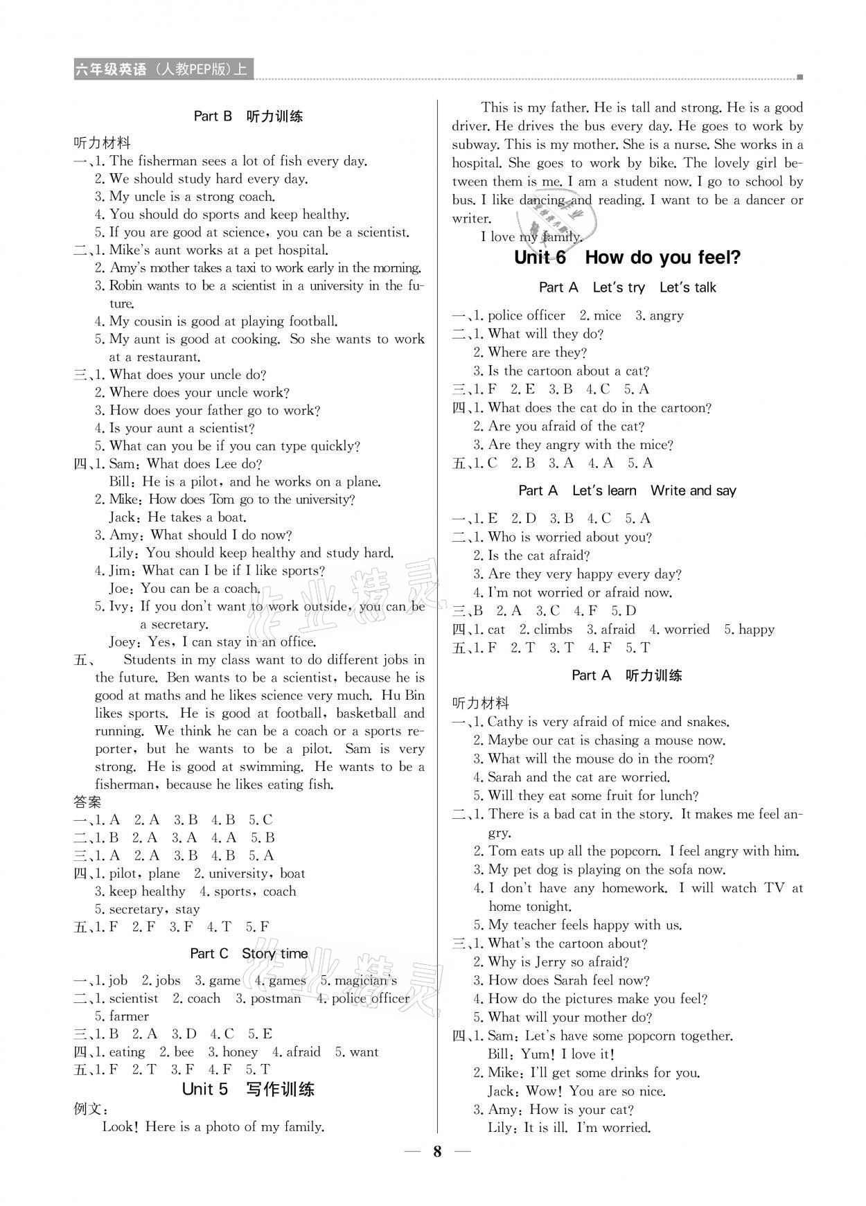 注:目前有些书本章节名称可能整理的还不是很完善,但都是按照顺序排列的,请同学们按照顺序仔细查找。练习册 2021年提分教练六年级英语上册人教精通版 答案主要是用来给同学们做完题方便对答案用的,请勿直接抄袭。