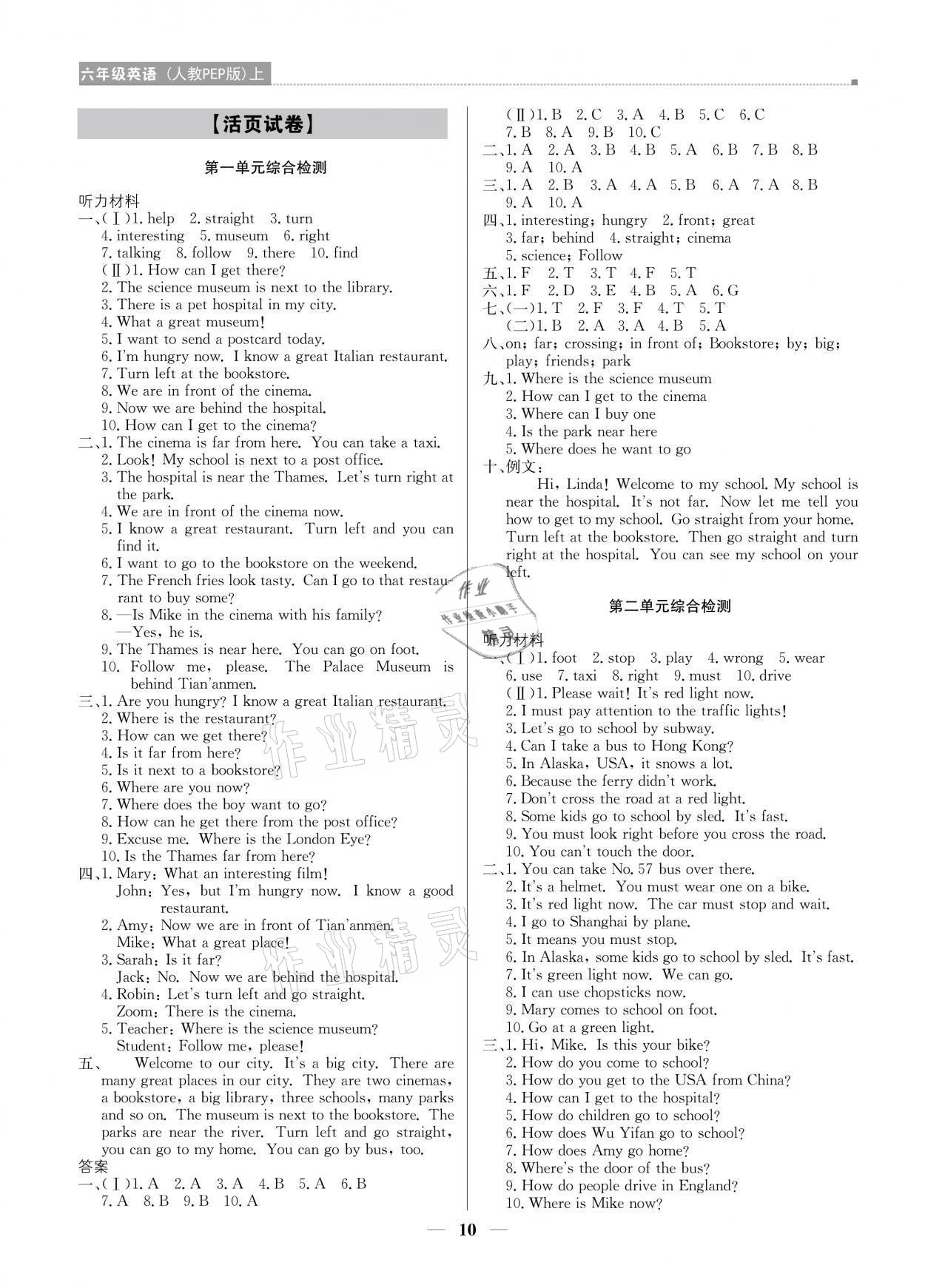 注:目前有些书本章节名称可能整理的还不是很完善,但都是按照顺序排列的,请同学们按照顺序仔细查找。练习册 2021年提分教练六年级英语上册人教精通版 答案主要是用来给同学们做完题方便对答案用的,请勿直接抄袭。