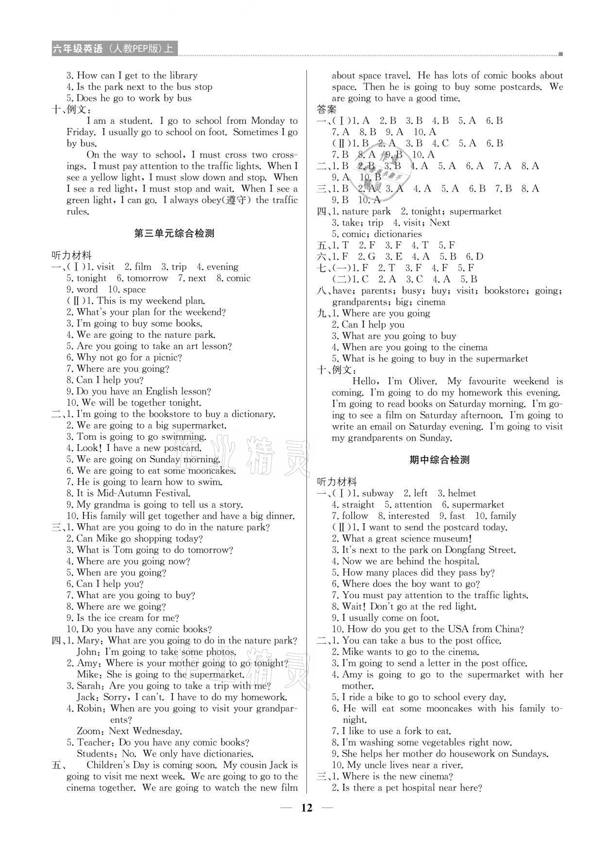 注:目前有些书本章节名称可能整理的还不是很完善,但都是按照顺序排列的,请同学们按照顺序仔细查找。练习册 2021年提分教练六年级英语上册人教精通版 答案主要是用来给同学们做完题方便对答案用的,请勿直接抄袭。