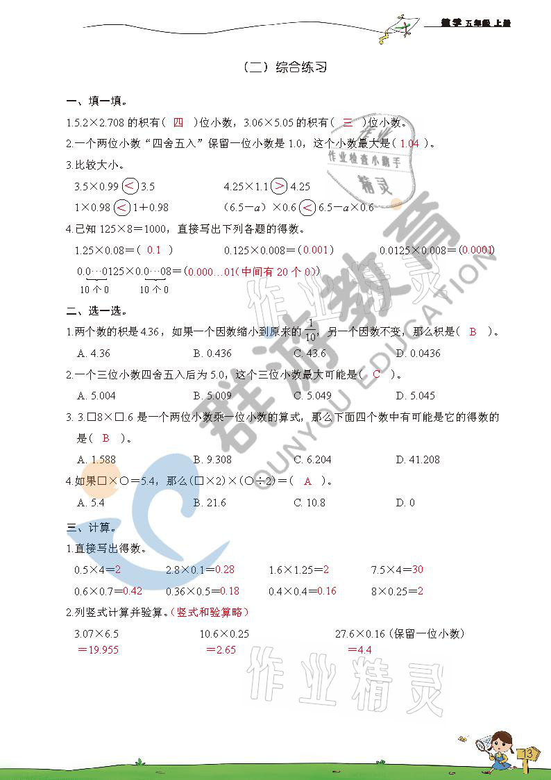 注:目前有些书本章节名称可能整理的还不是很完善,但都是按照顺序排列的,请同学们按照顺序仔细查找。练习册 2021年双全学业堂五年级数学上册人教版 答案主要是用来给同学们做完题方便对答案用的,请勿直接抄袭。