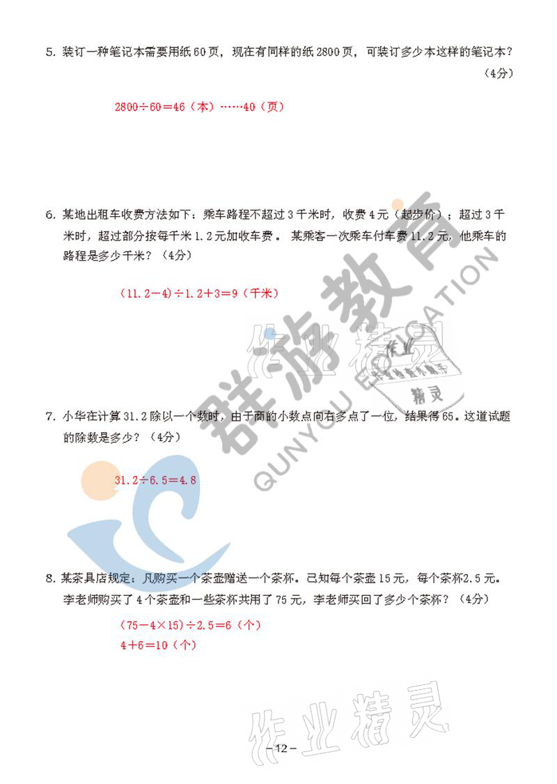 注:目前有些书本章节名称可能整理的还不是很完善,但都是按照顺序排列的,请同学们按照顺序仔细查找。练习册 2021年双全学业堂五年级数学上册人教版 答案主要是用来给同学们做完题方便对答案用的,请勿直接抄袭。
