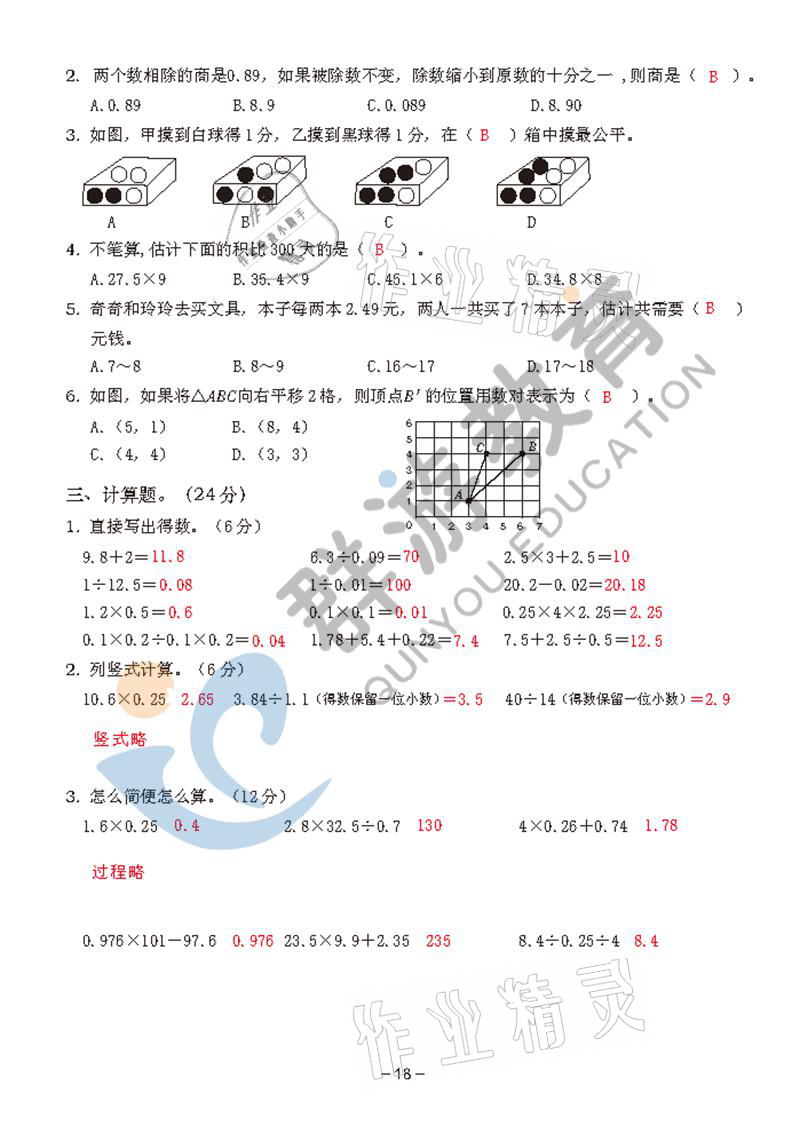 注:目前有些书本章节名称可能整理的还不是很完善,但都是按照顺序排列的,请同学们按照顺序仔细查找。练习册 2021年双全学业堂五年级数学上册人教版 答案主要是用来给同学们做完题方便对答案用的,请勿直接抄袭。