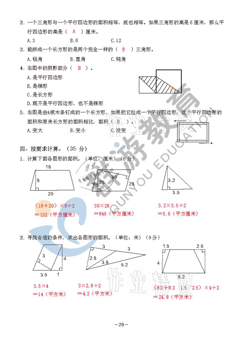 注:目前有些书本章节名称可能整理的还不是很完善,但都是按照顺序排列的,请同学们按照顺序仔细查找。练习册 2021年双全学业堂五年级数学上册人教版 答案主要是用来给同学们做完题方便对答案用的,请勿直接抄袭。