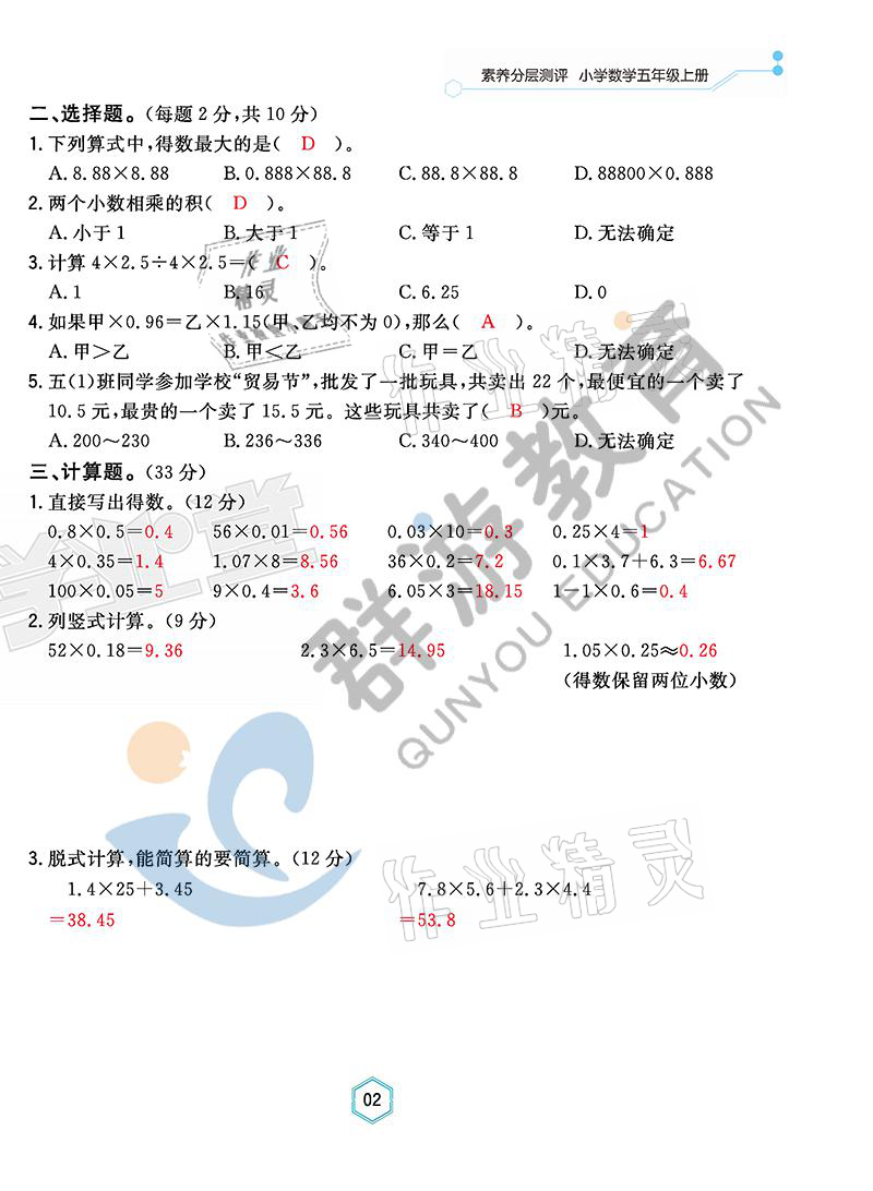 注:目前有些书本章节名称可能整理的还不是很完善,但都是按照顺序排列的,请同学们按照顺序仔细查找。练习册 2021年双全学业堂五年级数学上册人教版 答案主要是用来给同学们做完题方便对答案用的,请勿直接抄袭。