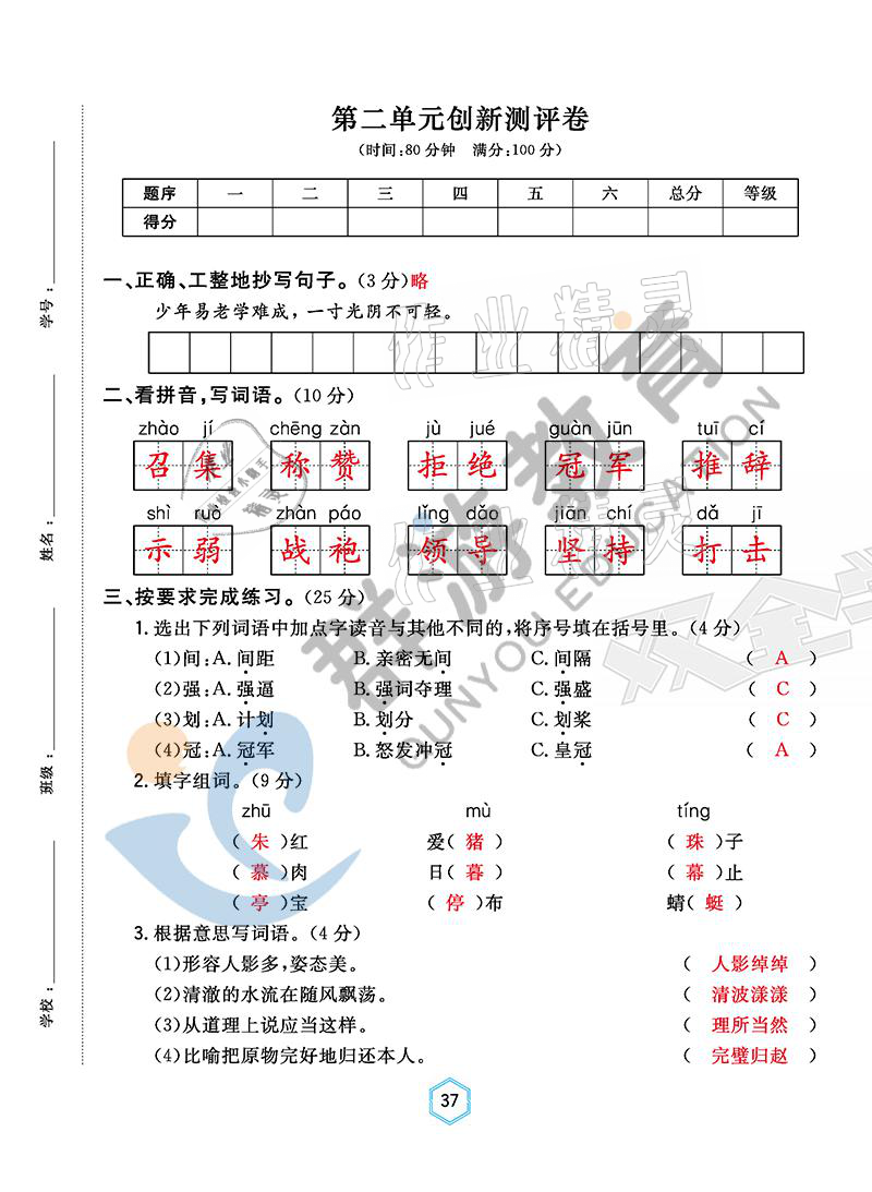 注:目前有些书本章节名称可能整理的还不是很完善,但都是按照顺序排列的,请同学们按照顺序仔细查找。练习册 2021年双全学业堂五年级语文上册人教版 答案主要是用来给同学们做完题方便对答案用的,请勿直接抄袭。