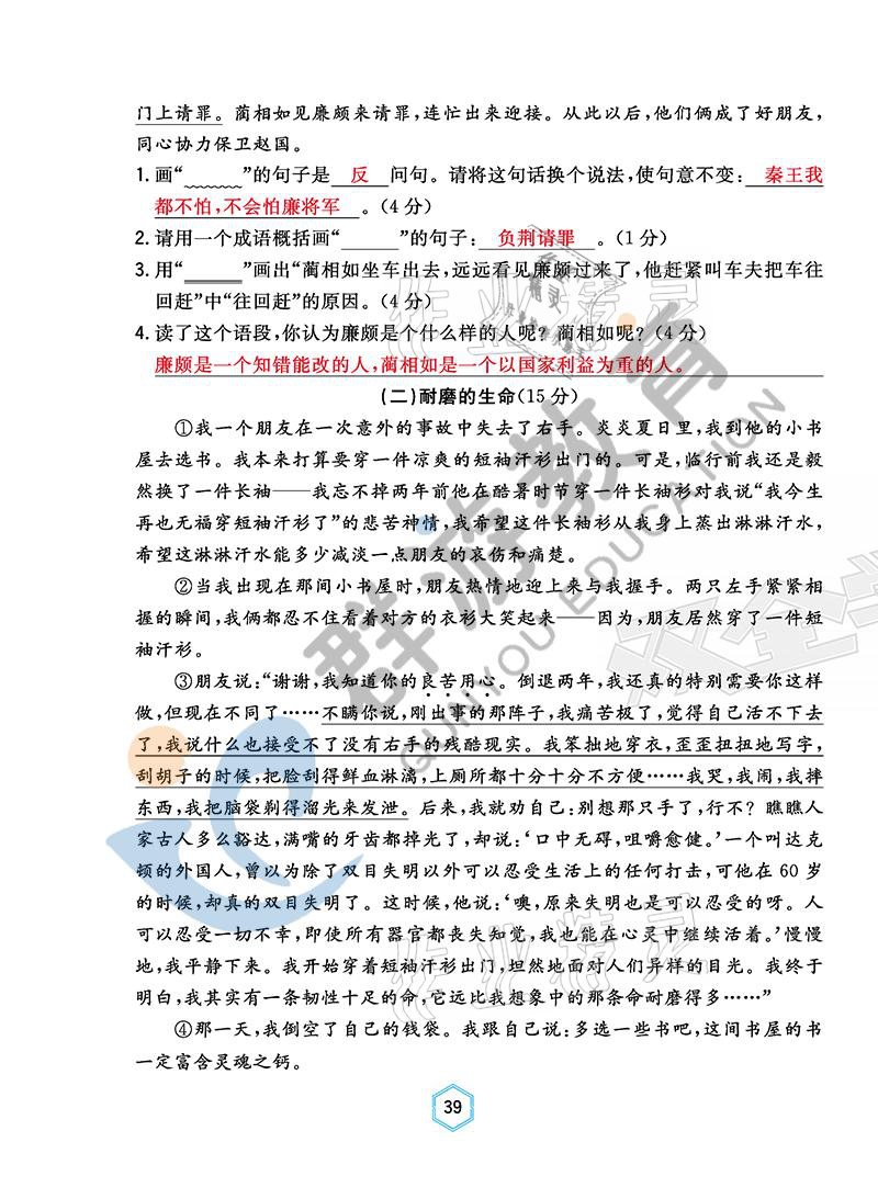 注:目前有些书本章节名称可能整理的还不是很完善,但都是按照顺序排列的,请同学们按照顺序仔细查找。练习册 2021年双全学业堂五年级语文上册人教版 答案主要是用来给同学们做完题方便对答案用的,请勿直接抄袭。