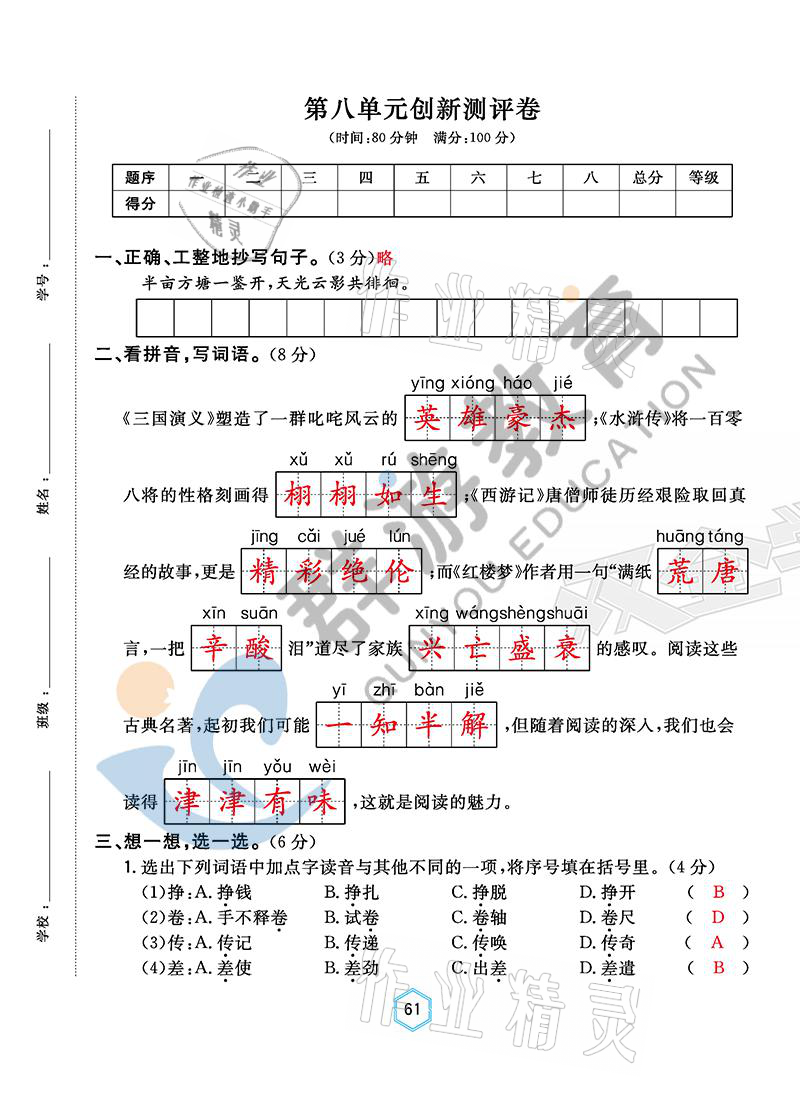 - 参考答案第61页