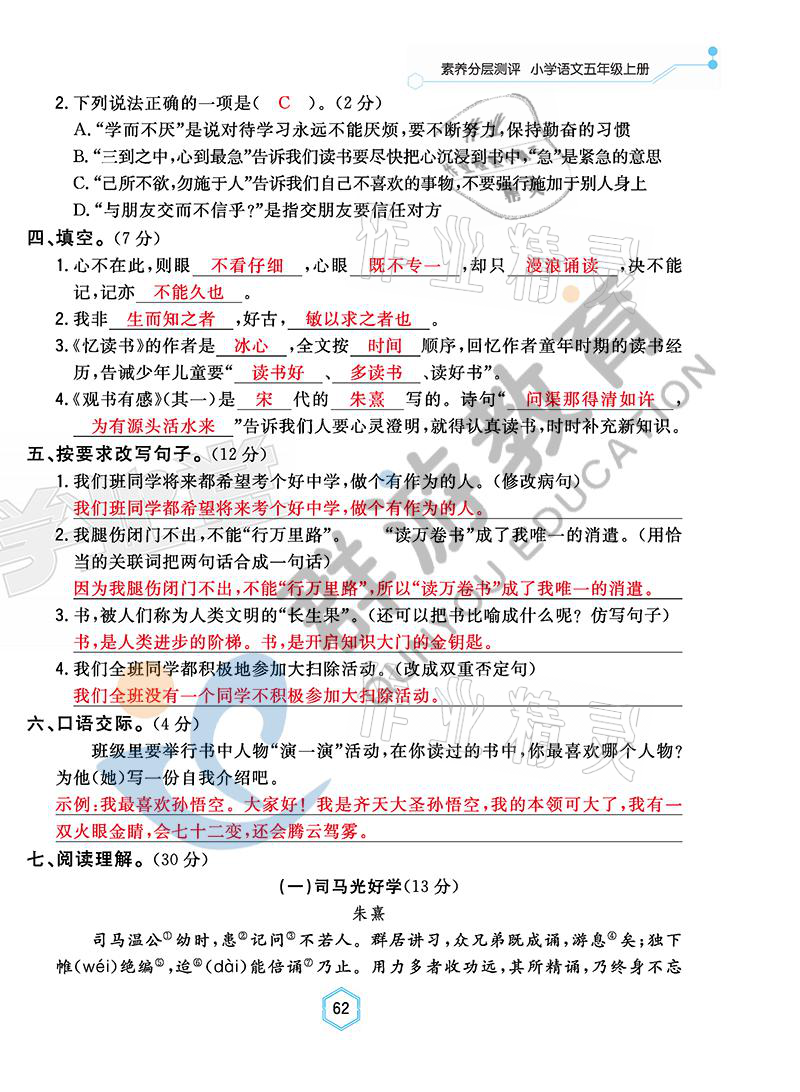 - 参考答案第62页