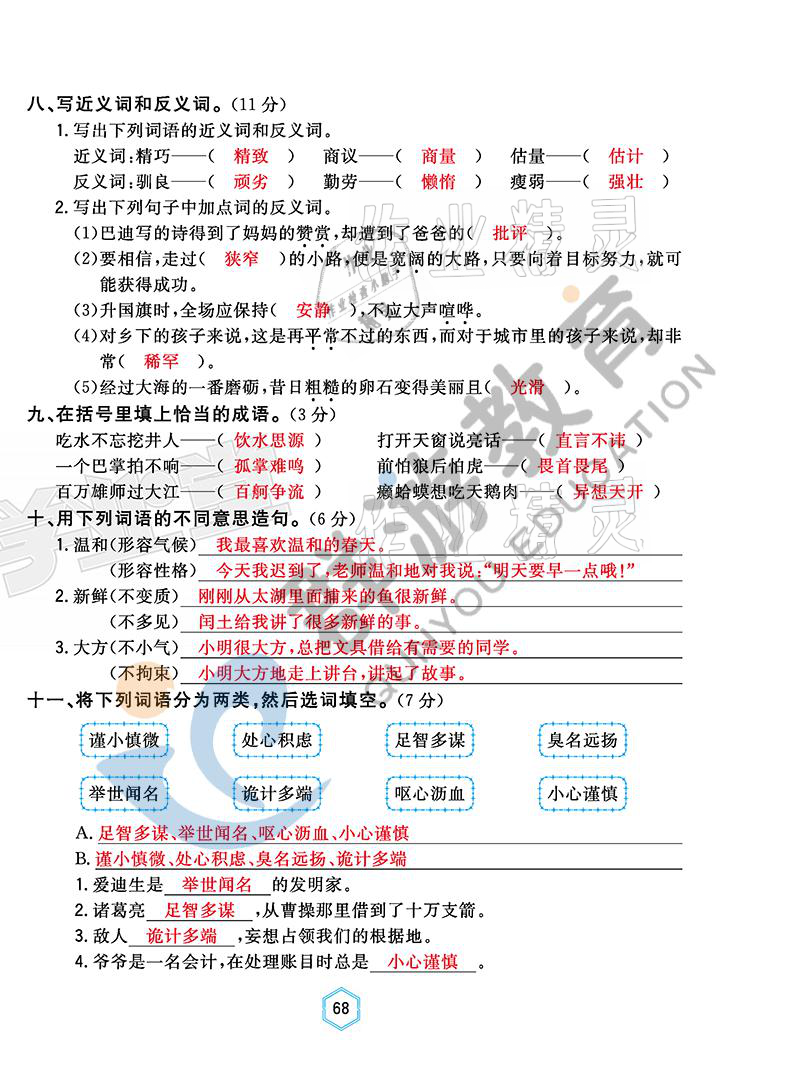 注:目前有些书本章节名称可能整理的还不是很完善,但都是按照顺序排列的,请同学们按照顺序仔细查找。练习册 2021年双全学业堂五年级语文上册人教版 答案主要是用来给同学们做完题方便对答案用的,请勿直接抄袭。