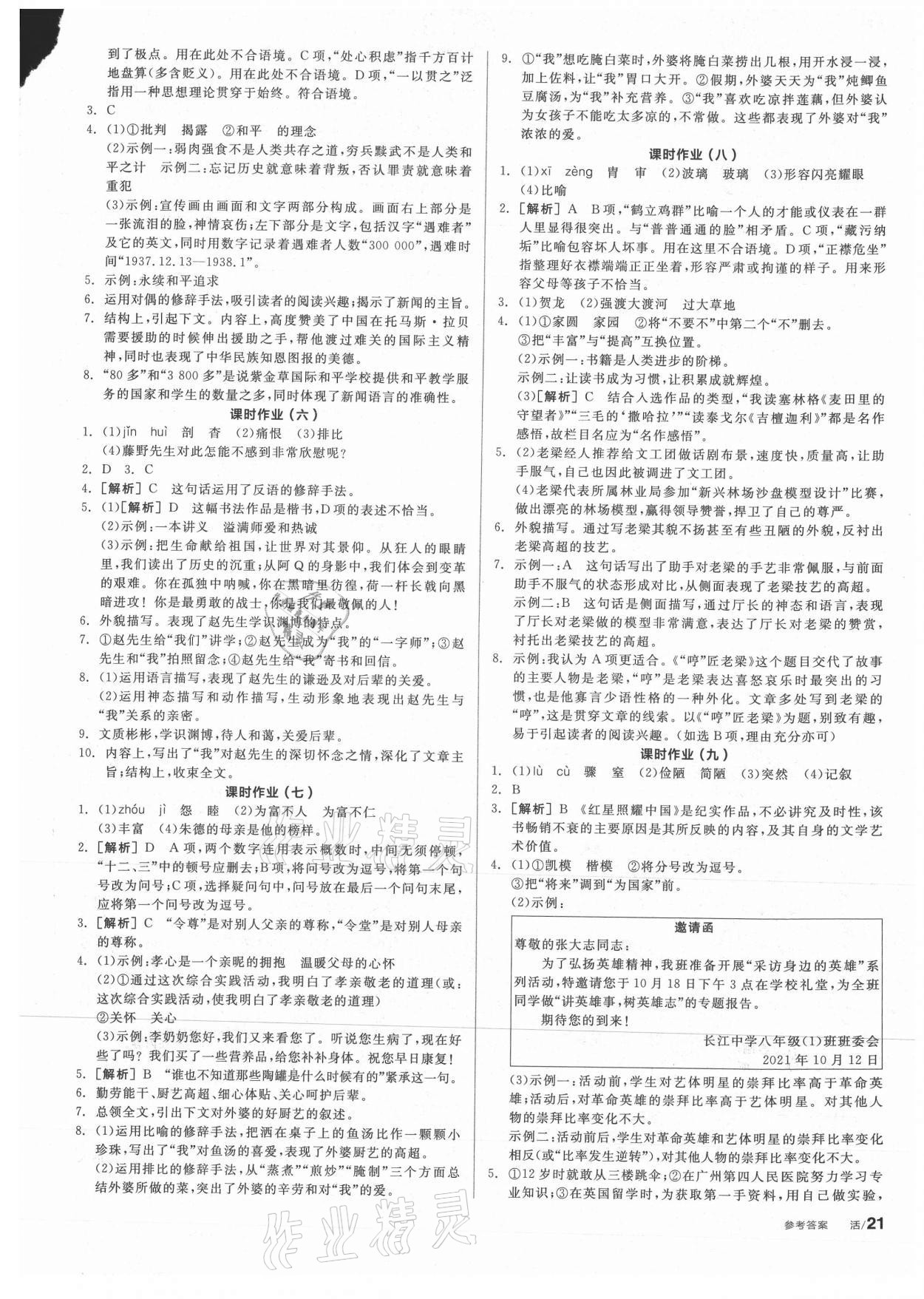 2021年全品学练考八年级语文上册人教版安徽专版