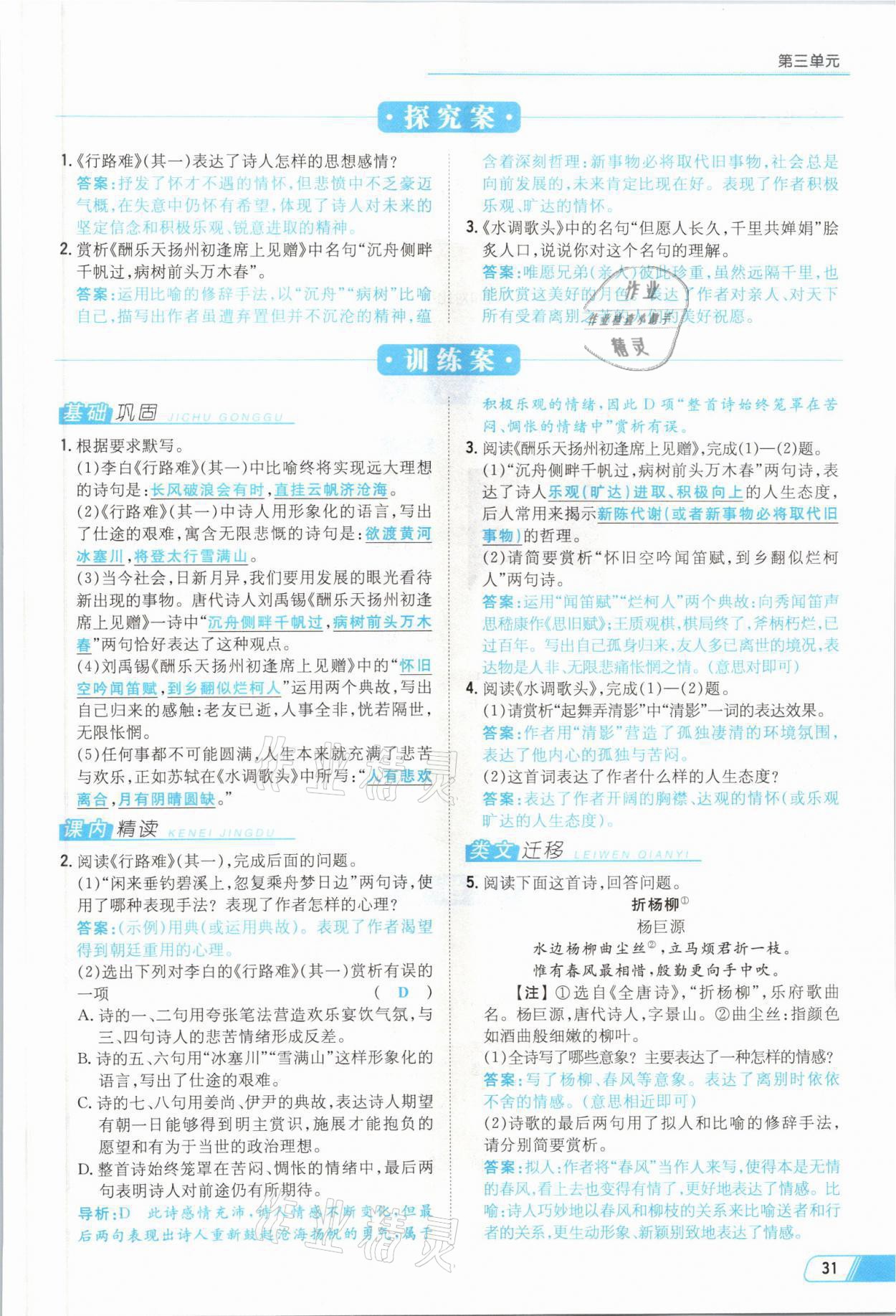 2021年初中同步学习导与练导学探究案九年级语文全一册人教版云南专版