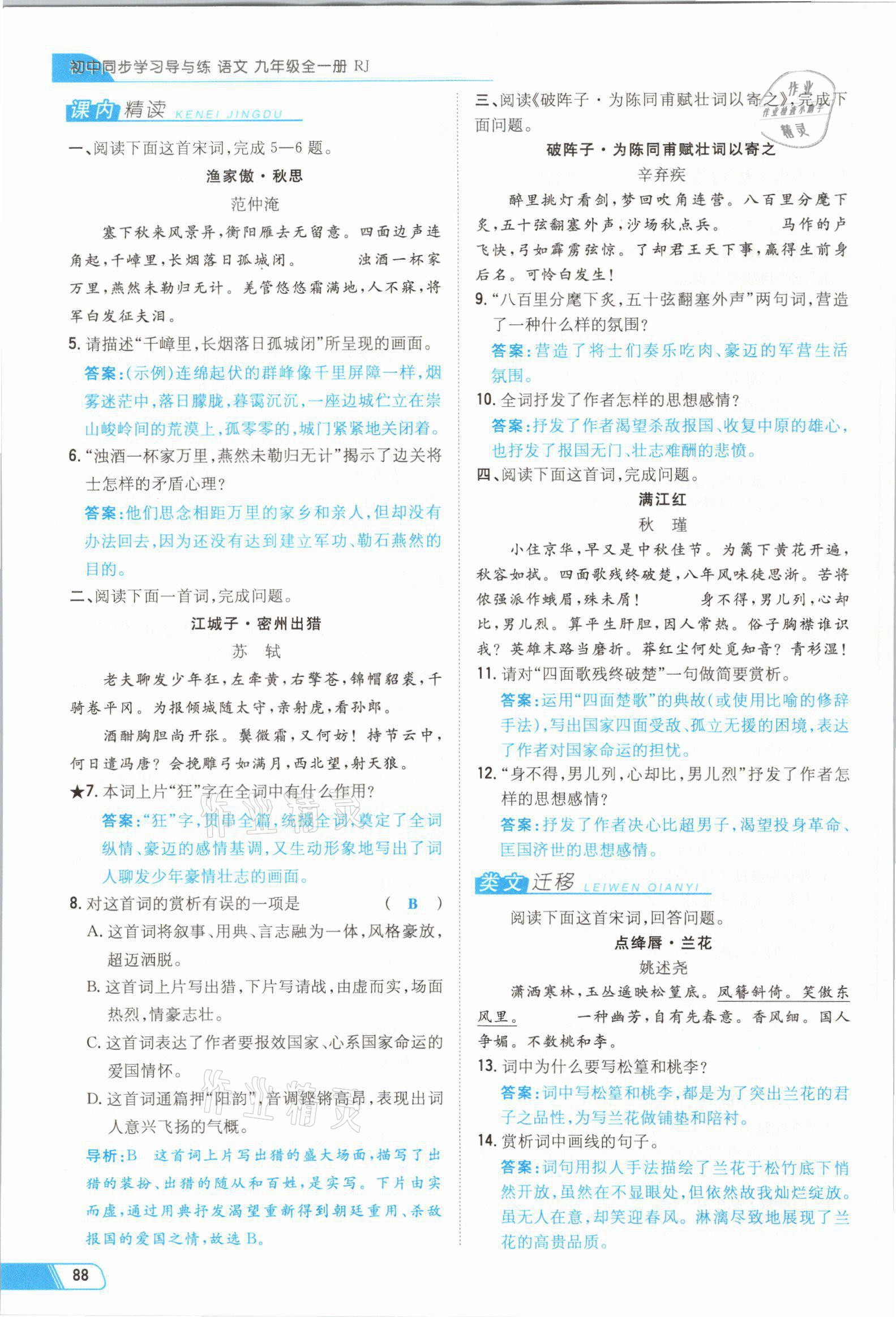 注:目前有些书本章节名称可能整理的还不是很完善,但都是按照顺序排列的,请同学们按照顺序仔细查找。练习册 2021年初中同步学习导与练导学探究案九年级语文全一册人教版云南专版 答案主要是用来给同学们做完题方便对答案用的,请勿直接抄袭。