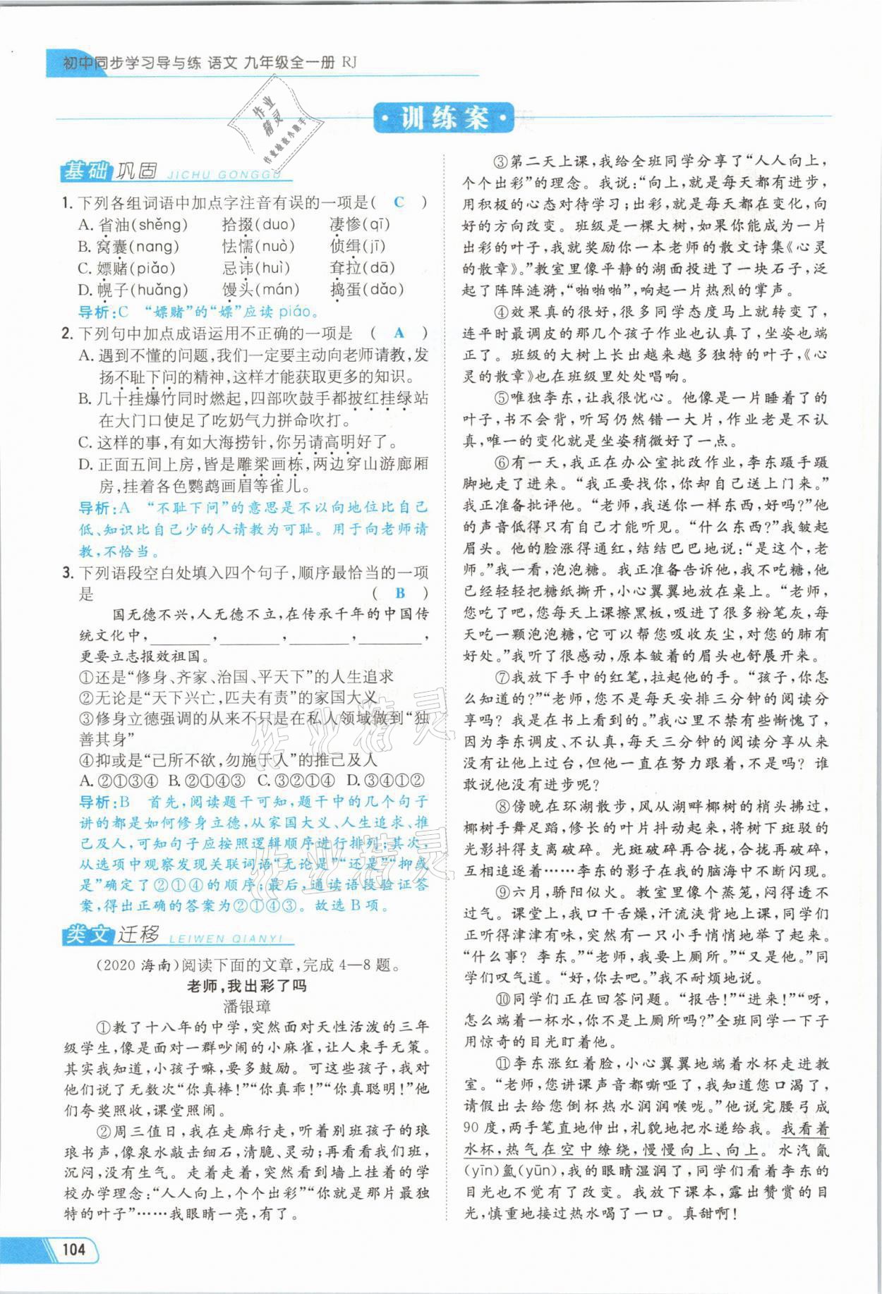 注:目前有些书本章节名称可能整理的还不是很完善,但都是按照顺序排列的,请同学们按照顺序仔细查找。练习册 2021年初中同步学习导与练导学探究案九年级语文全一册人教版云南专版 答案主要是用来给同学们做完题方便对答案用的,请勿直接抄袭。