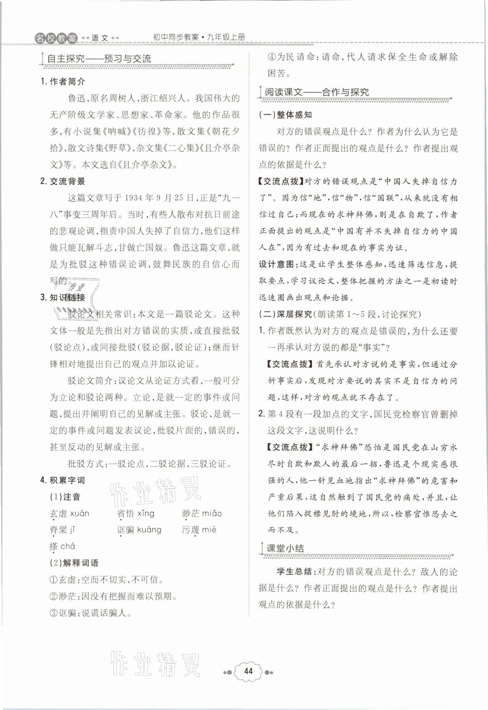 2021年初中同步学习导与练导学探究案九年级语文全一册人教版云南专版
