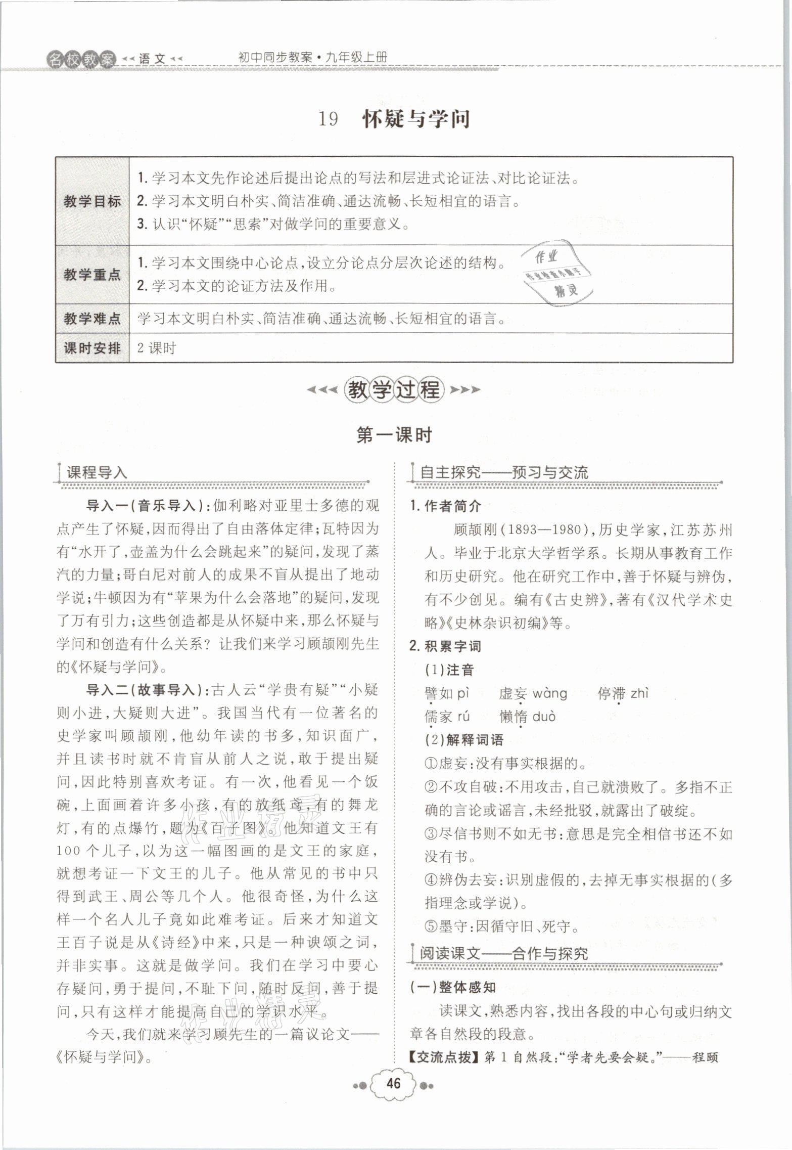 2021年初中同步学习导与练导学探究案九年级语文全一册人教版云南专版