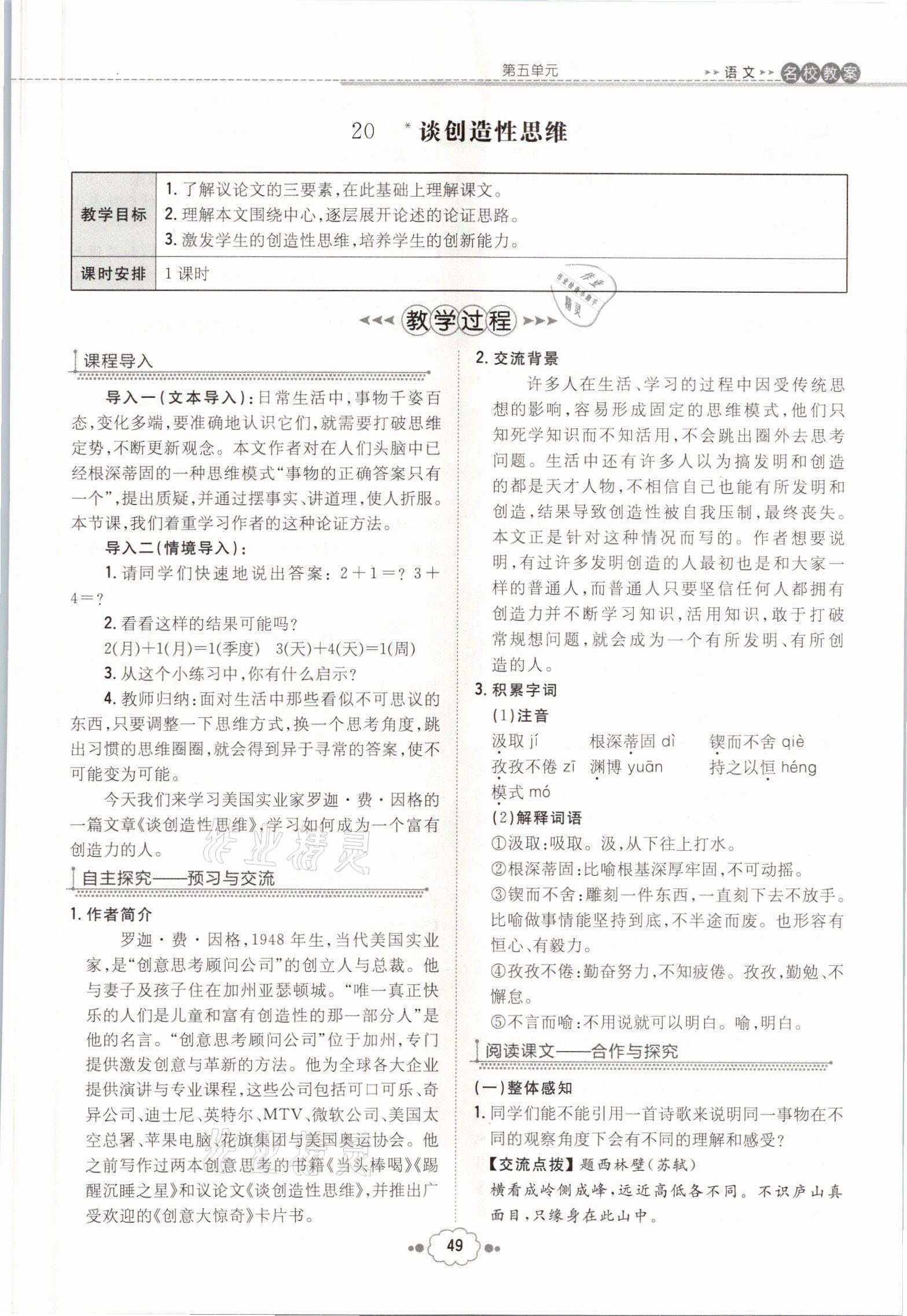 2021年初中同步学习导与练导学探究案九年级语文全一册人教版云南专版