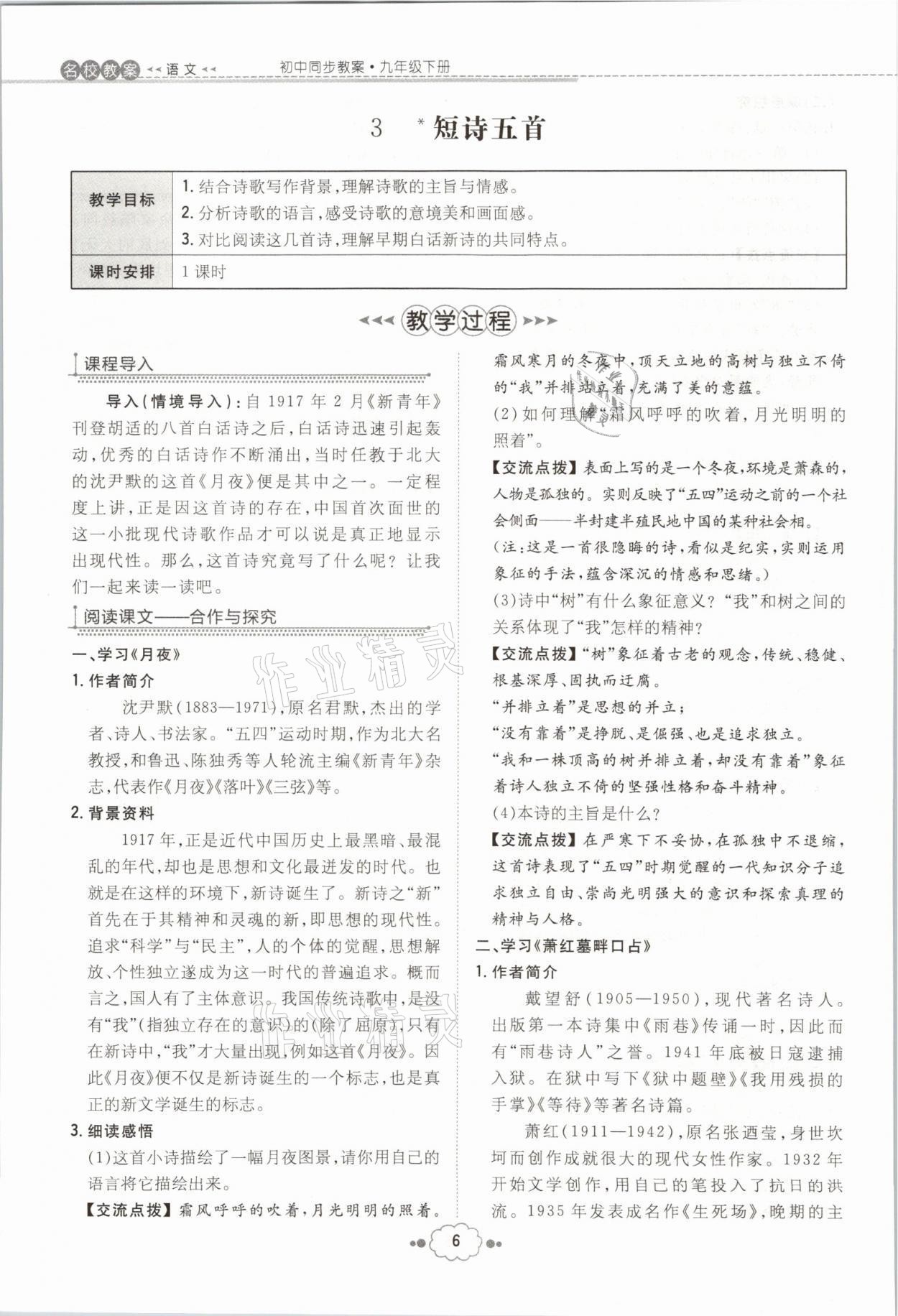 2021年初中同步学习导与练导学探究案九年级语文全一册人教版云南专版