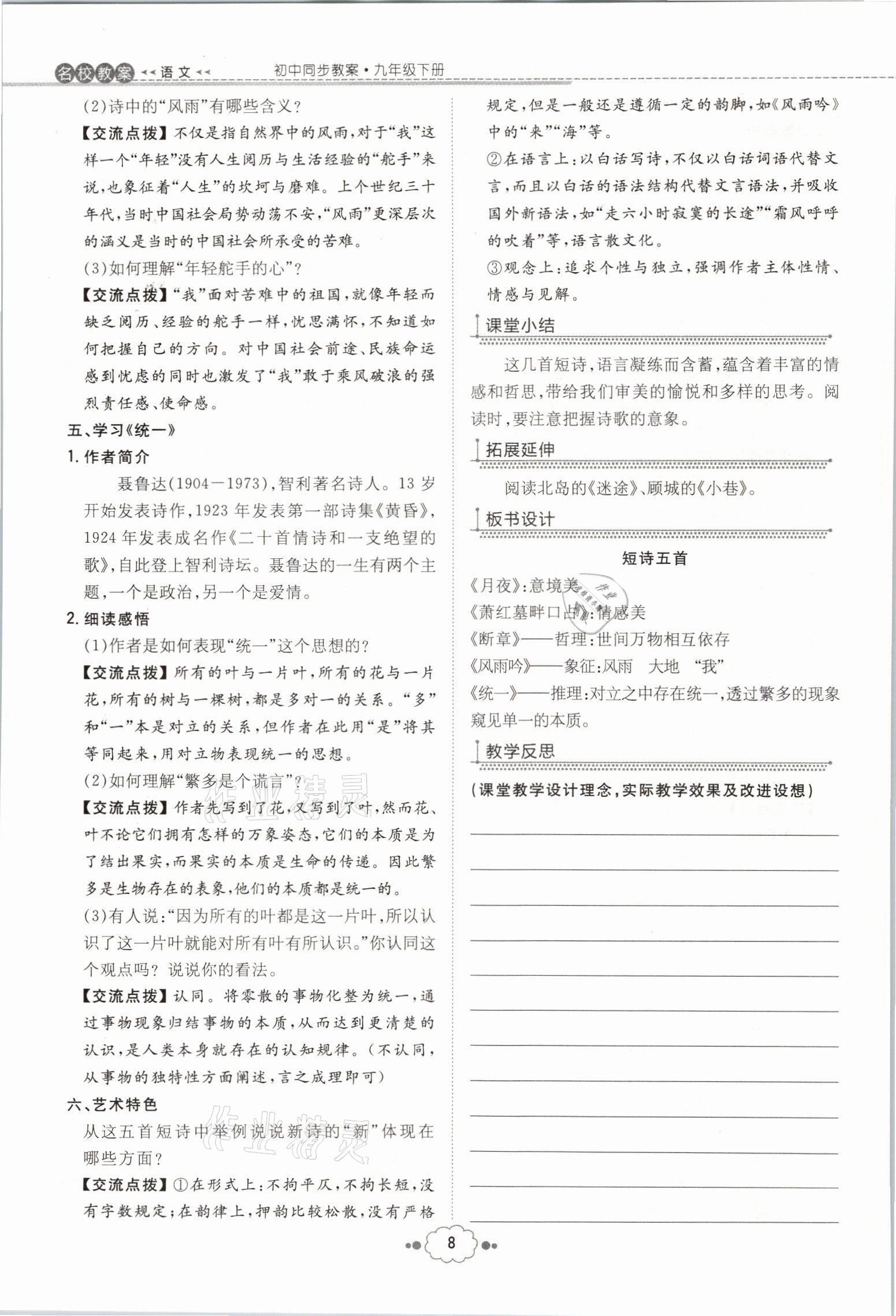 2021年初中同步学习导与练导学探究案九年级语文全一册人教版云南专版