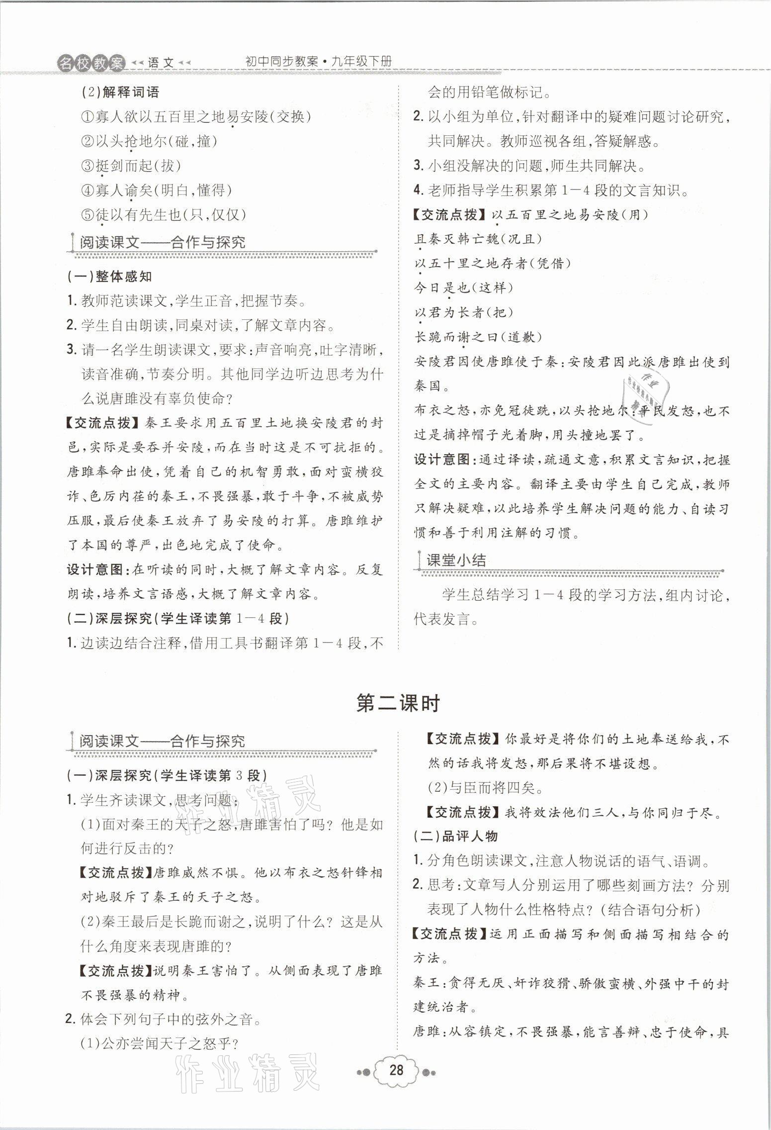 2021年初中同步学习导与练导学探究案九年级语文全一册人教版云南专版