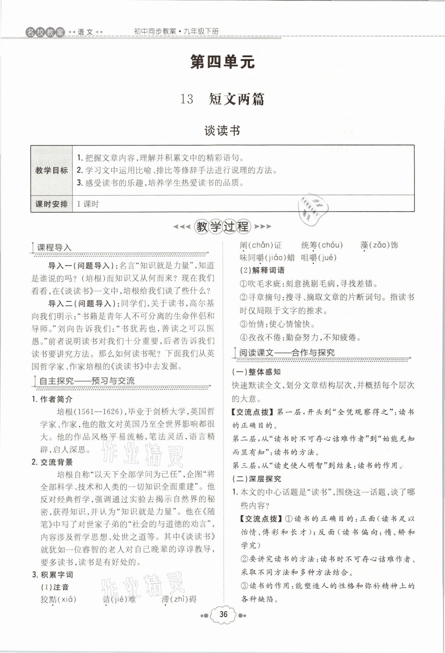 2021年初中同步学习导与练导学探究案九年级语文全一册人教版云南专版