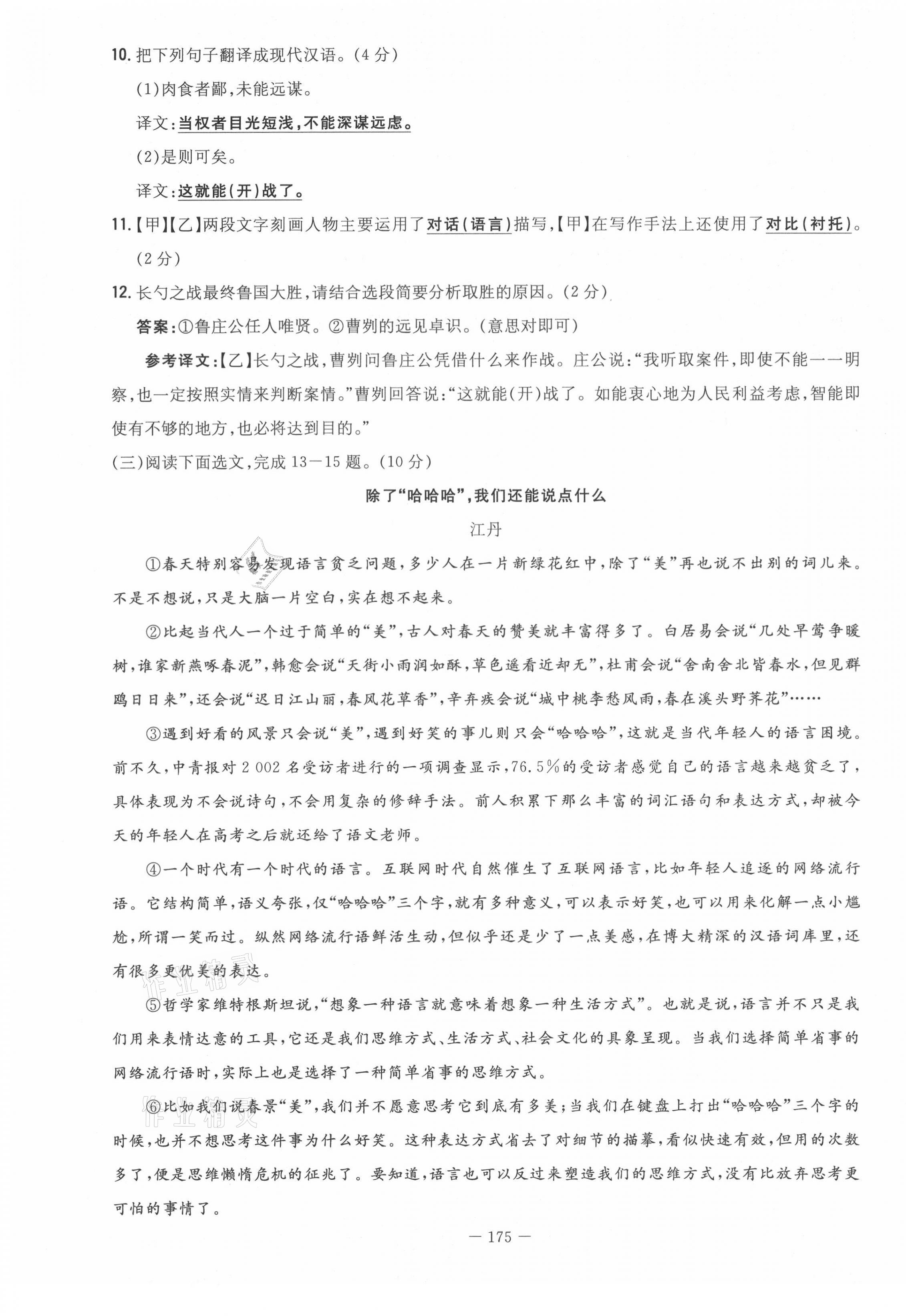 2021年初中同步学习导与练导学探究案九年级语文全一册人教版云南专版