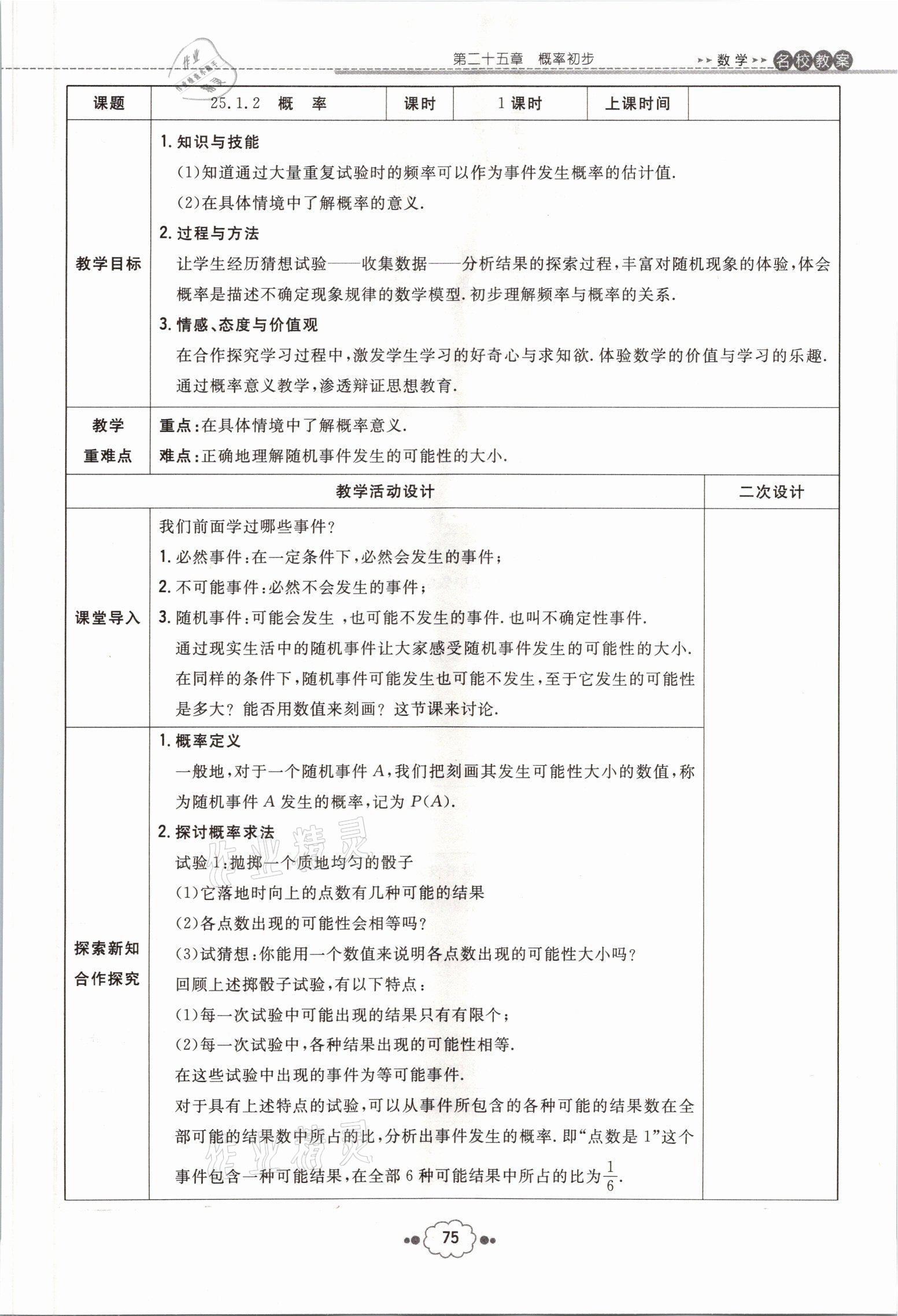 2021年初中同步学习导与练导学探究案九年级数学全一册人教版云南专版