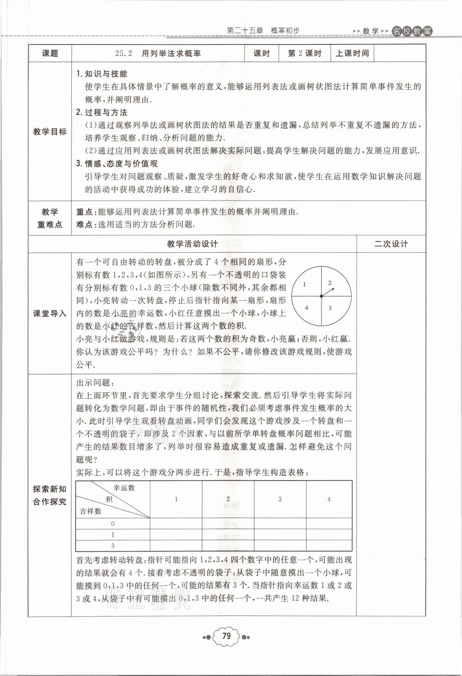 2021年初中同步学习导与练导学探究案九年级数学全一册人教版云南专版