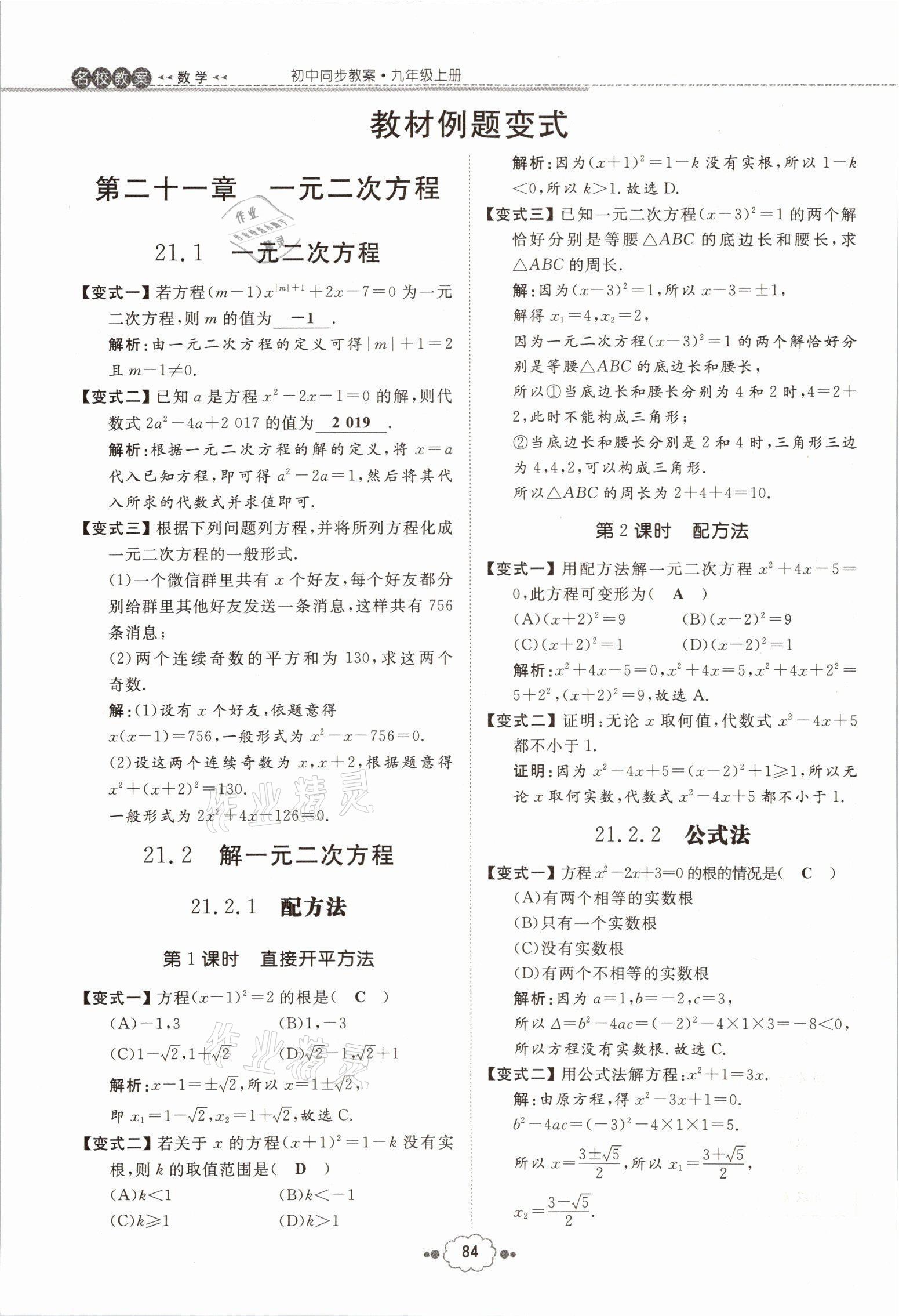 2021年初中同步学习导与练导学探究案九年级数学全一册人教版云南专版