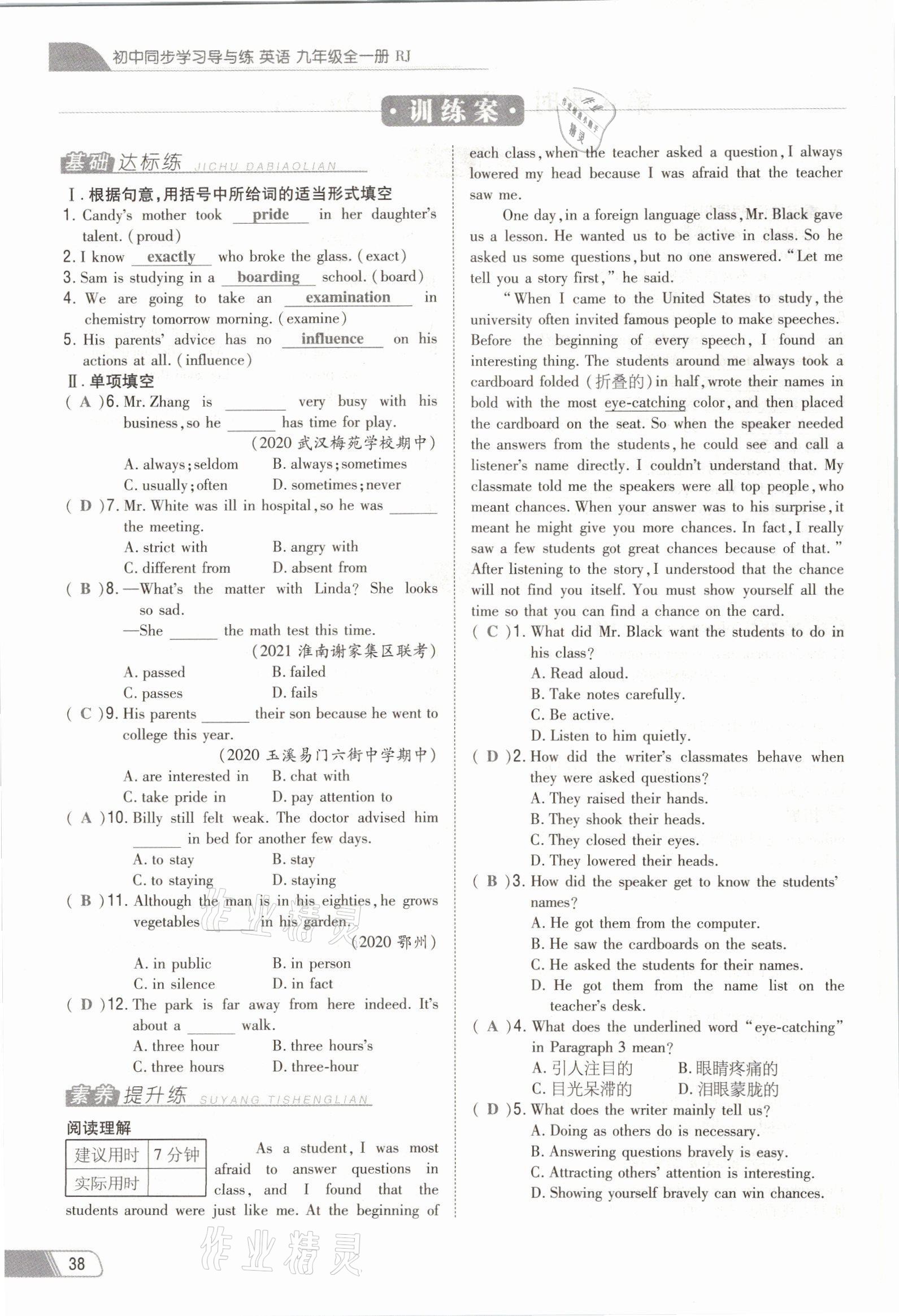 注:目前有些书本章节名称可能整理的还不是很完善,但都是按照顺序排列的,请同学们按照顺序仔细查找。练习册 2021年初中同步学习导与练导学探究案九年级英语全一册人教版云南专版 答案主要是用来给同学们做完题方便对答案用的,请勿直接抄袭。