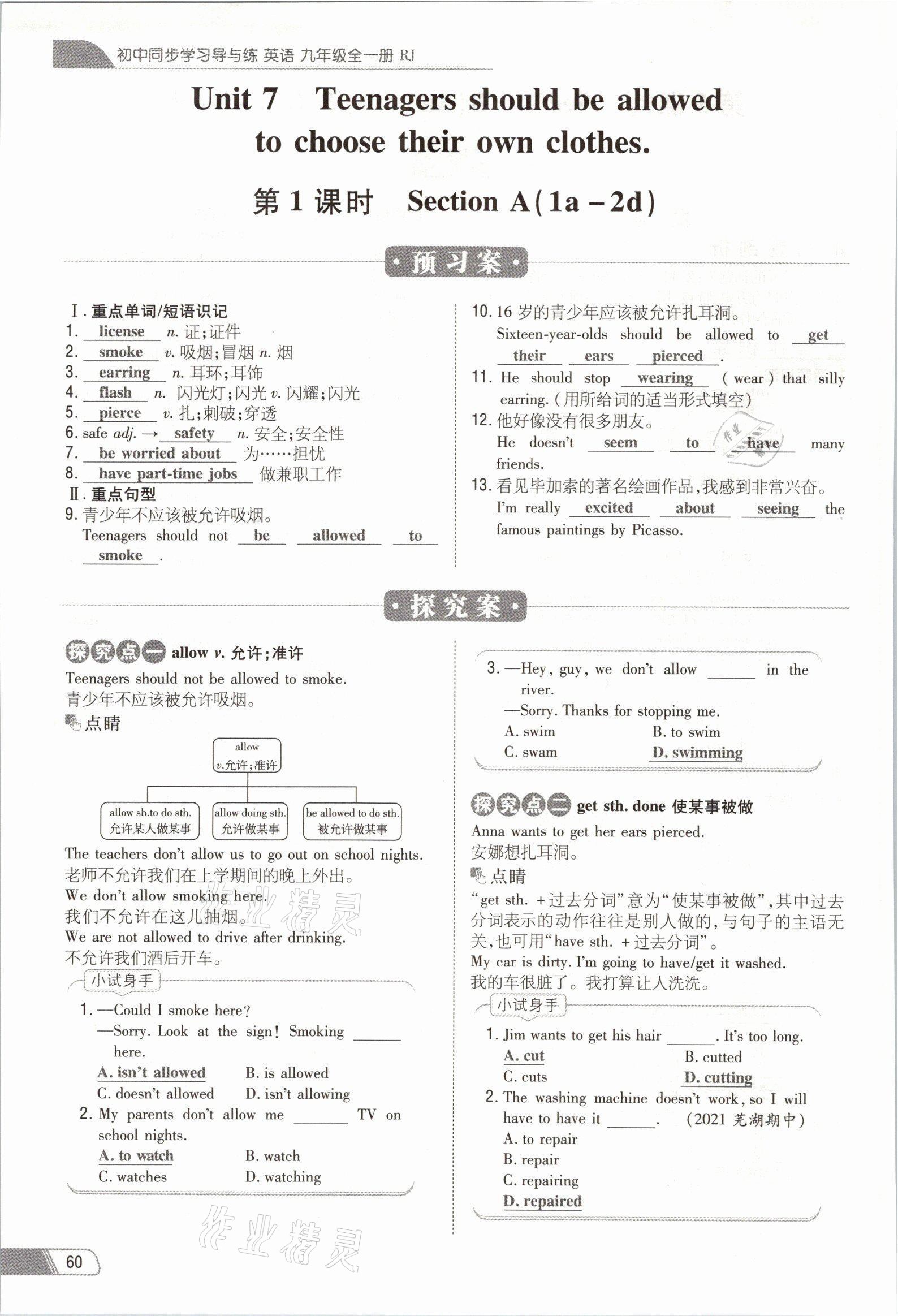 注:目前有些书本章节名称可能整理的还不是很完善,但都是按照顺序排列的,请同学们按照顺序仔细查找。练习册 2021年初中同步学习导与练导学探究案九年级英语全一册人教版云南专版 答案主要是用来给同学们做完题方便对答案用的,请勿直接抄袭。