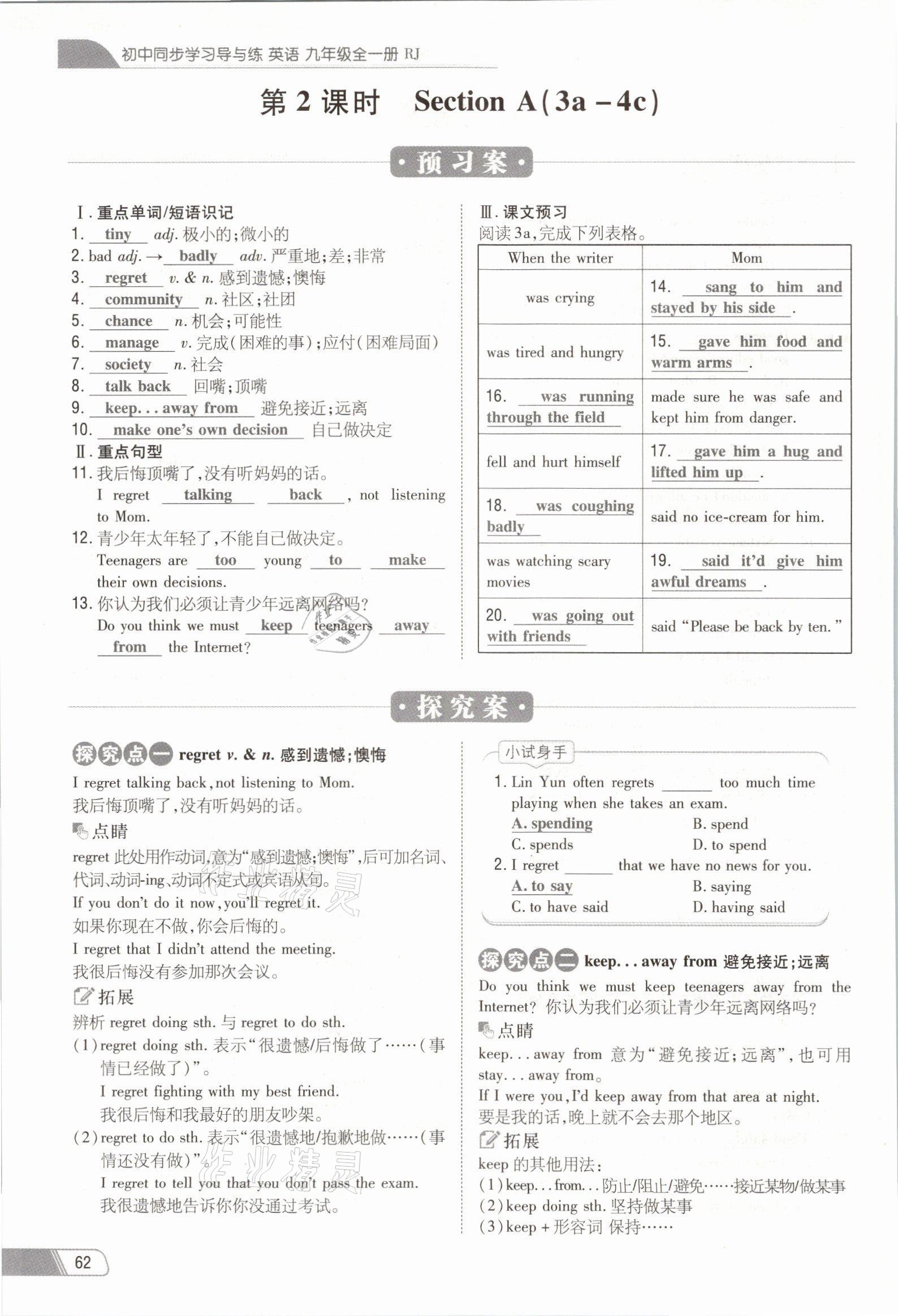 注:目前有些书本章节名称可能整理的还不是很完善,但都是按照顺序排列的,请同学们按照顺序仔细查找。练习册 2021年初中同步学习导与练导学探究案九年级英语全一册人教版云南专版 答案主要是用来给同学们做完题方便对答案用的,请勿直接抄袭。