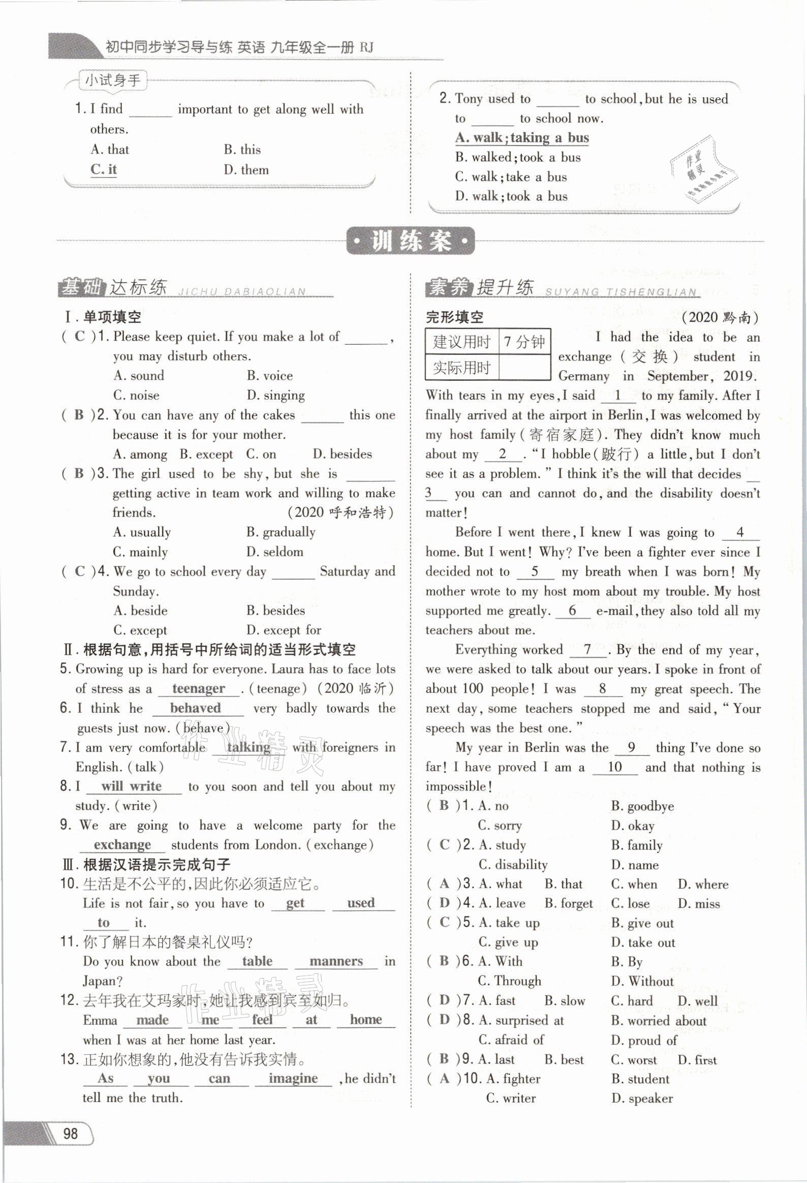注:目前有些书本章节名称可能整理的还不是很完善,但都是按照顺序排列的,请同学们按照顺序仔细查找。练习册 2021年初中同步学习导与练导学探究案九年级英语全一册人教版云南专版 答案主要是用来给同学们做完题方便对答案用的,请勿直接抄袭。