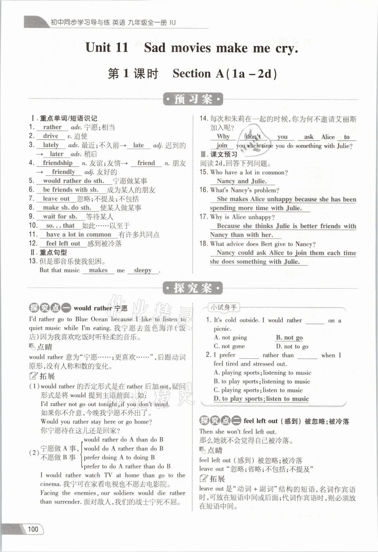 注:目前有些书本章节名称可能整理的还不是很完善,但都是按照顺序排列的,请同学们按照顺序仔细查找。练习册 2021年初中同步学习导与练导学探究案九年级英语全一册人教版云南专版 答案主要是用来给同学们做完题方便对答案用的,请勿直接抄袭。