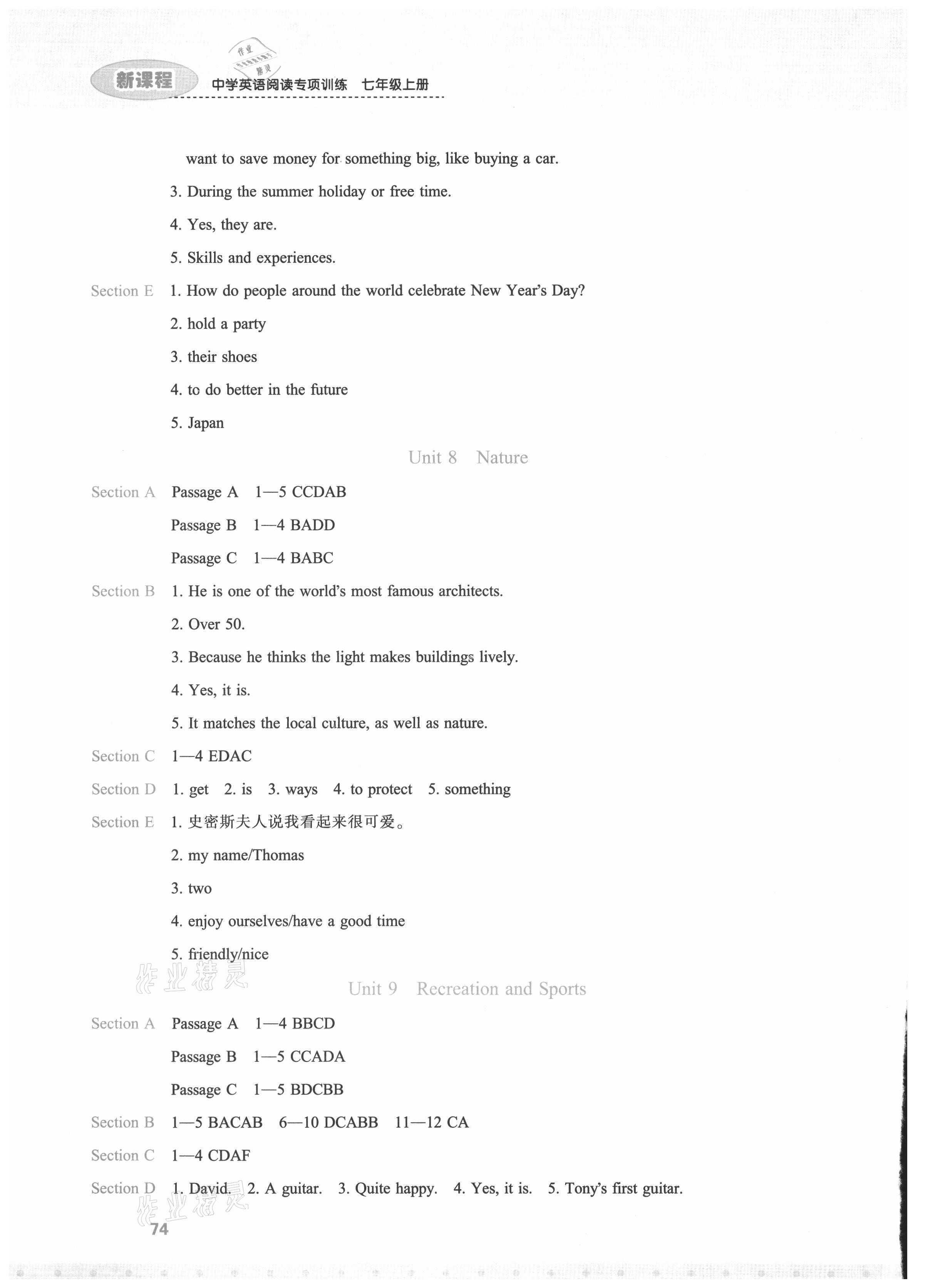 注:目前有些书本章节名称可能整理的还不是很完善,但都是按照顺序排列的,请同学们按照顺序仔细查找。练习册 2021年新课程英语阅读专项训练七年级上册外研版 答案主要是用来给同学们做完题方便对答案用的,请勿直接抄袭。