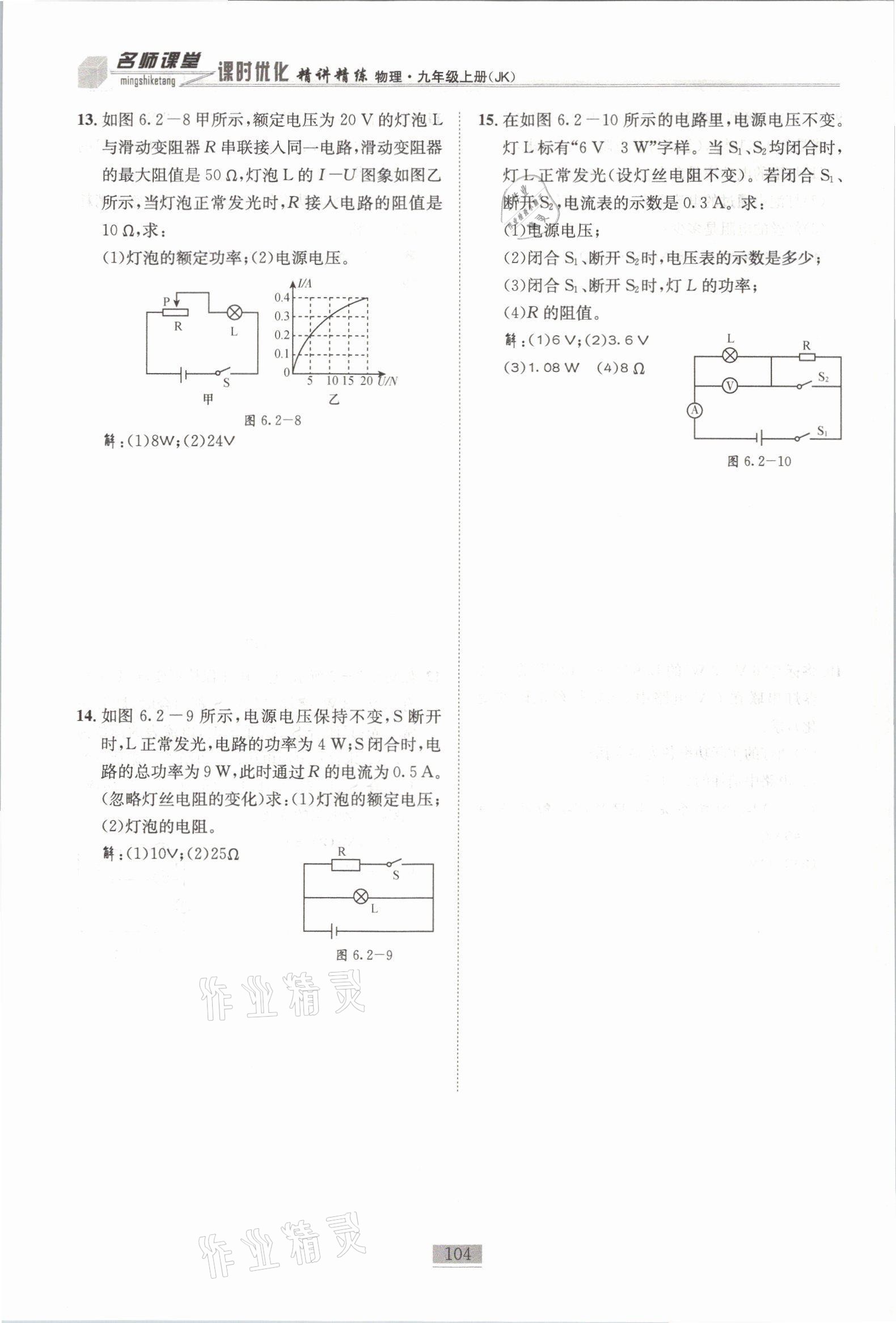 注:目前有些书本章节名称可能整理的还不是很完善,但都是按照顺序排列的,请同学们按照顺序仔细查找。练习册 2021年名师课堂课时优化精讲精练九年级物理上册教科版 答案主要是用来给同学们做完题方便对答案用的,请勿直接抄袭。