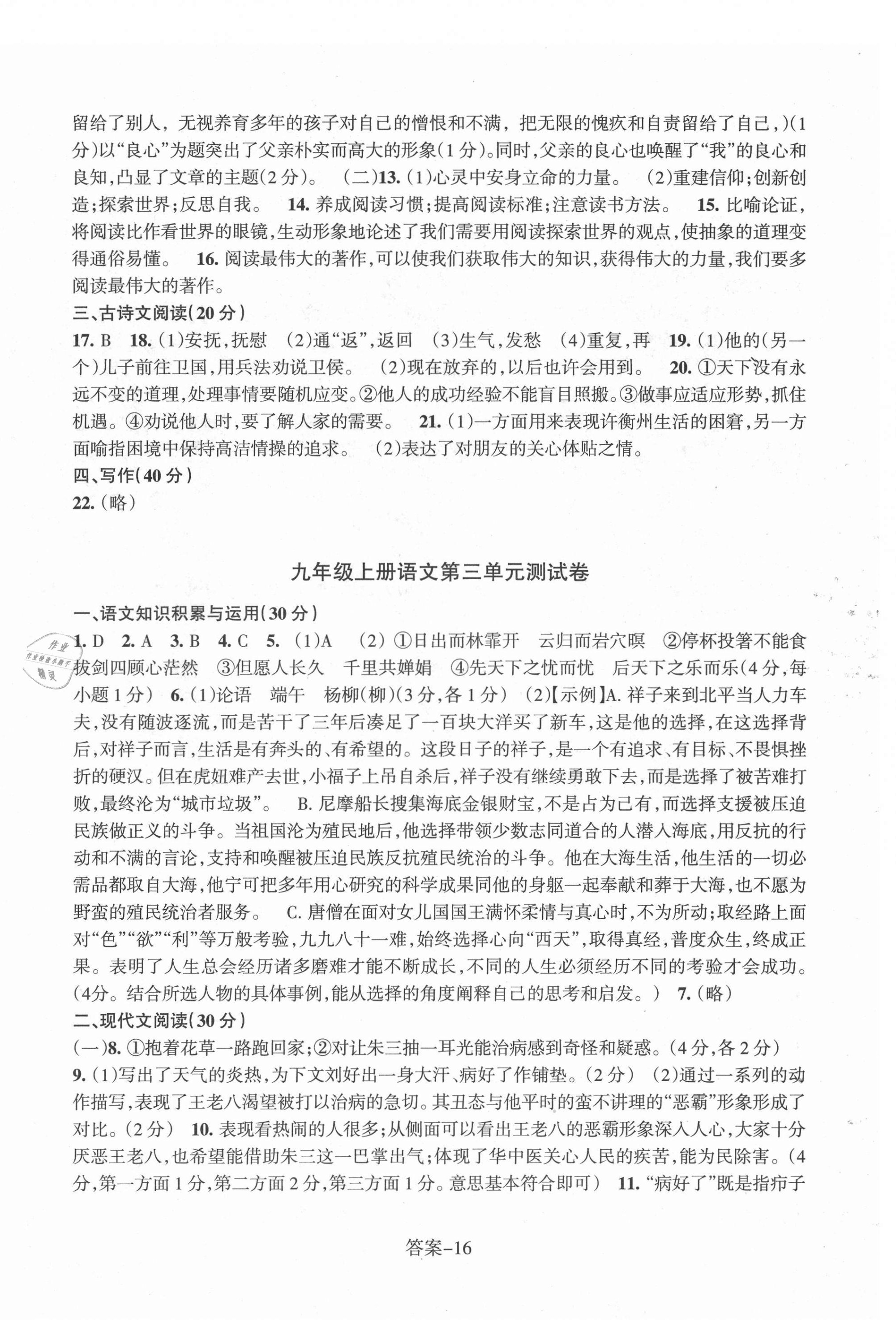 注:目前有些书本章节名称可能整理的还不是很完善,但都是按照顺序排列的,请同学们按照顺序仔细查找。练习册 2021年每课一练浙江少年儿童出版社九年级语文上册人教版 答案主要是用来给同学们做完题方便对答案用的,请勿直接抄袭。