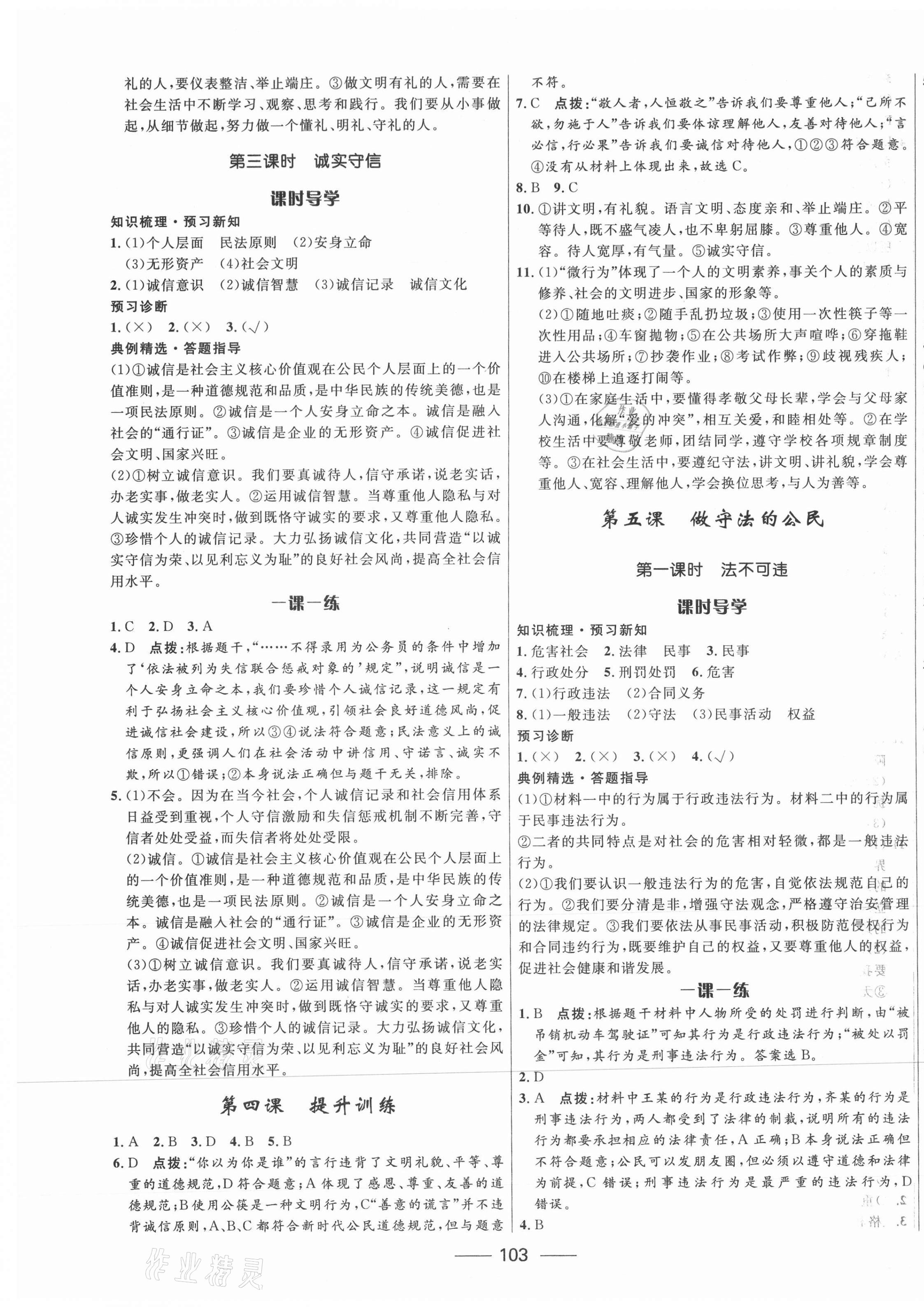 注:目前有些书本章节名称可能整理的还不是很完善,但都是按照顺序排列的,请同学们按照顺序仔细查找。练习册 2021年夺冠百分百新导学课时练八年级道德与法治上册人教版 答案主要是用来给同学们做完题方便对答案用的,请勿直接抄袭。