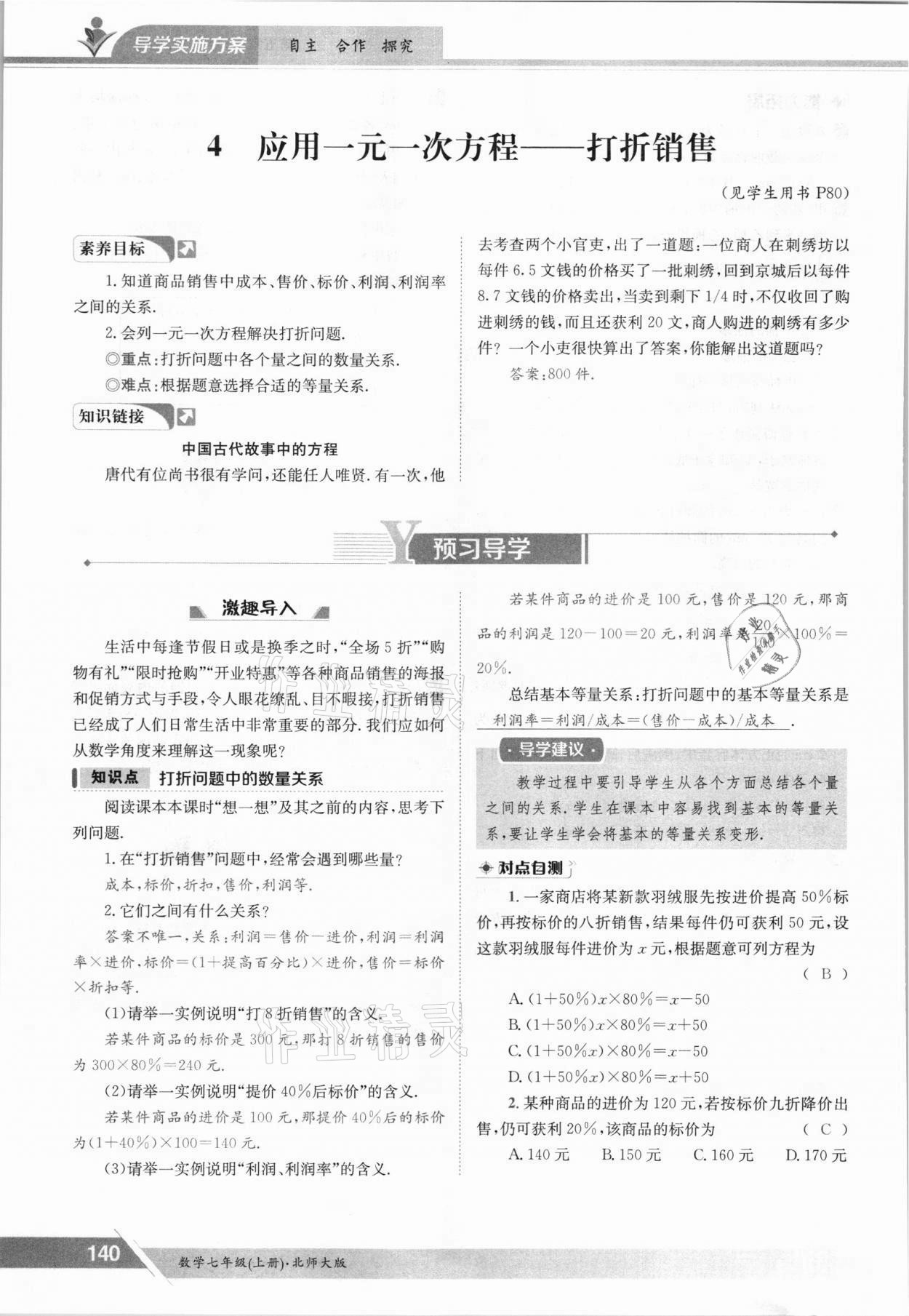 《2021年金太阳导学测评七年级数学上册北师大版》