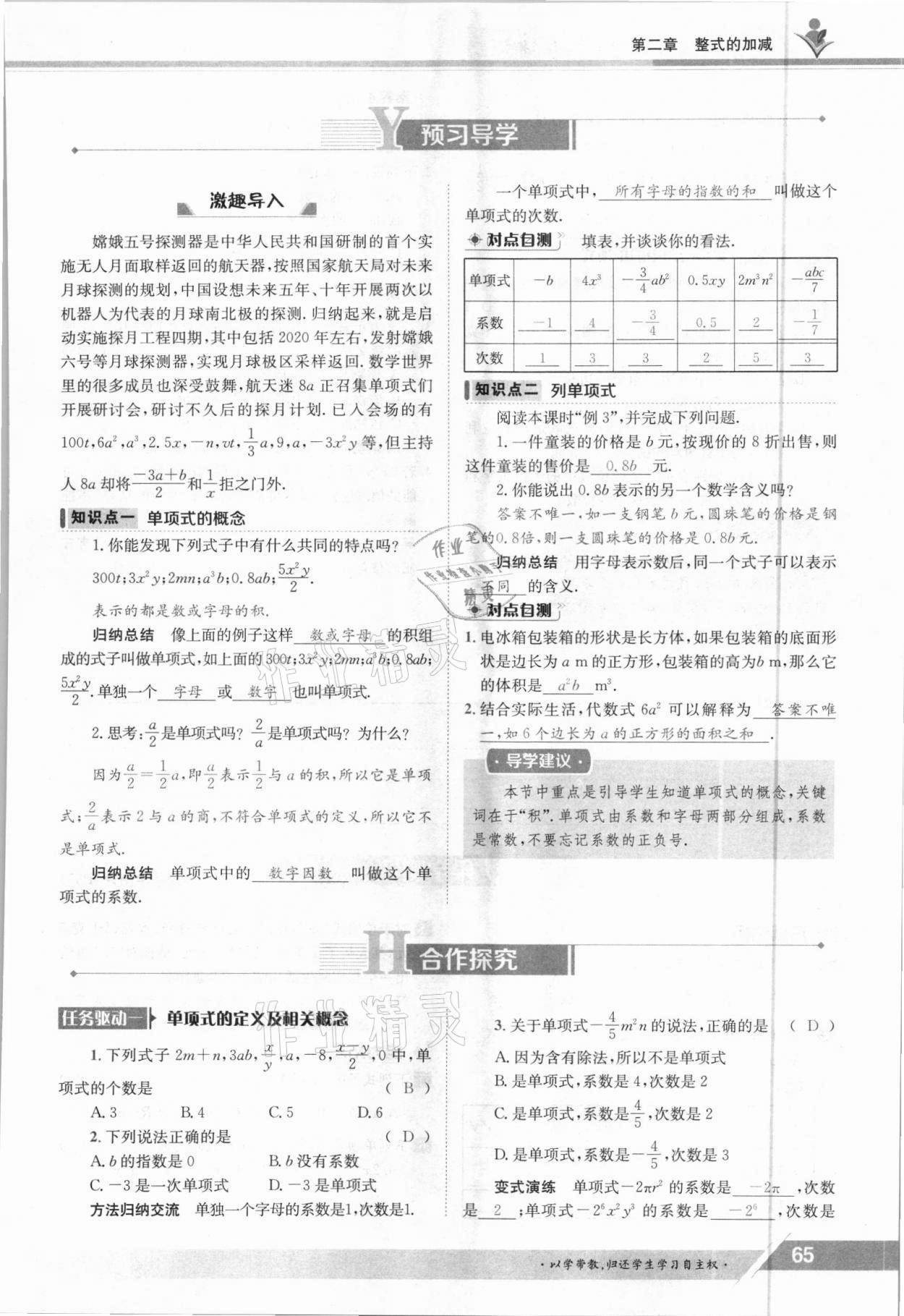 注:目前有些书本章节名称可能整理的还不是很完善,但都是按照顺序排列的,请同学们按照顺序仔细查找。练习册 2021年金太阳导学测评七年级数学上册人教版 答案主要是用来给同学们做完题方便对答案用的,请勿直接抄袭。