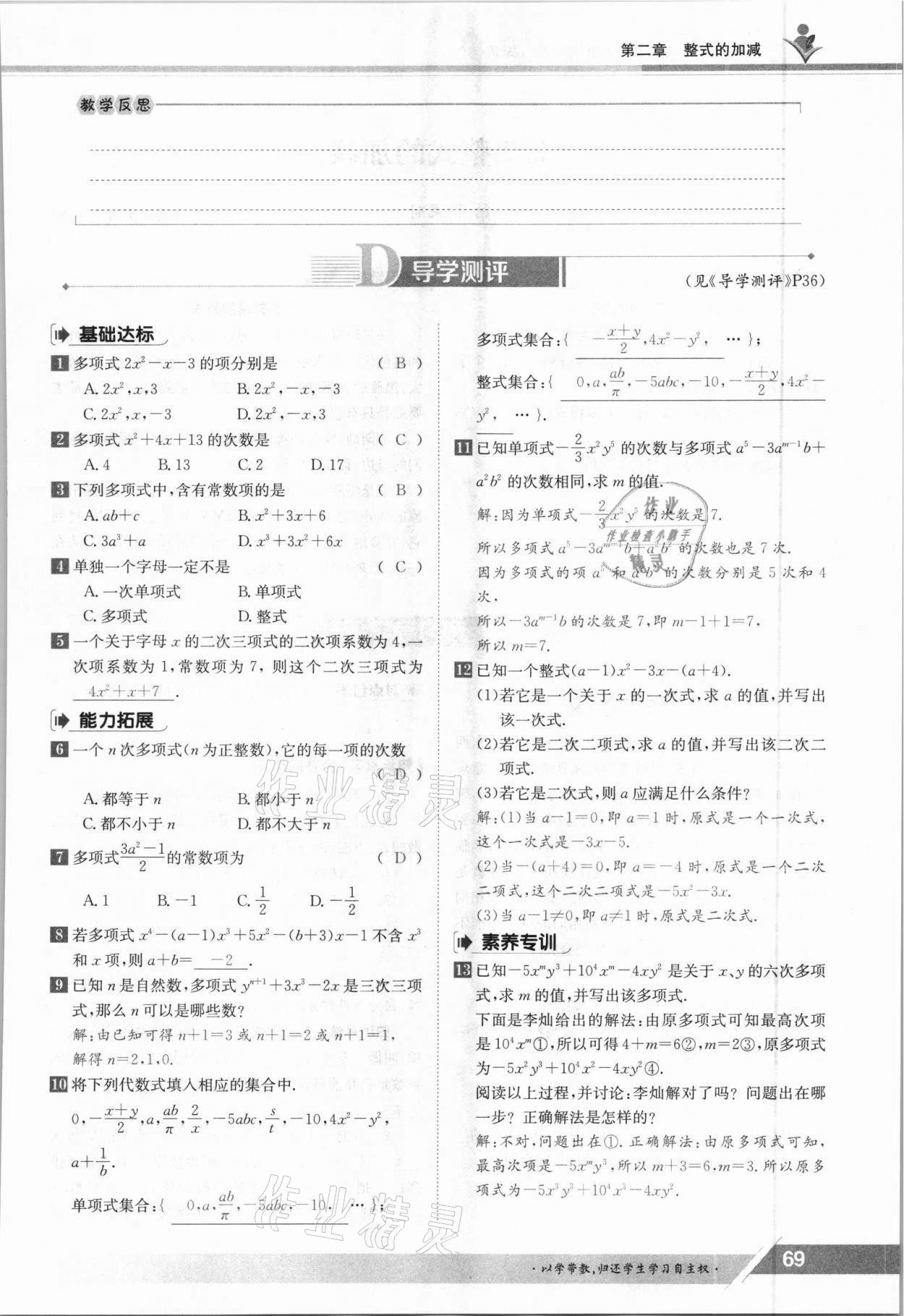 注:目前有些书本章节名称可能整理的还不是很完善,但都是按照顺序排列的,请同学们按照顺序仔细查找。练习册 2021年金太阳导学测评七年级数学上册人教版 答案主要是用来给同学们做完题方便对答案用的,请勿直接抄袭。