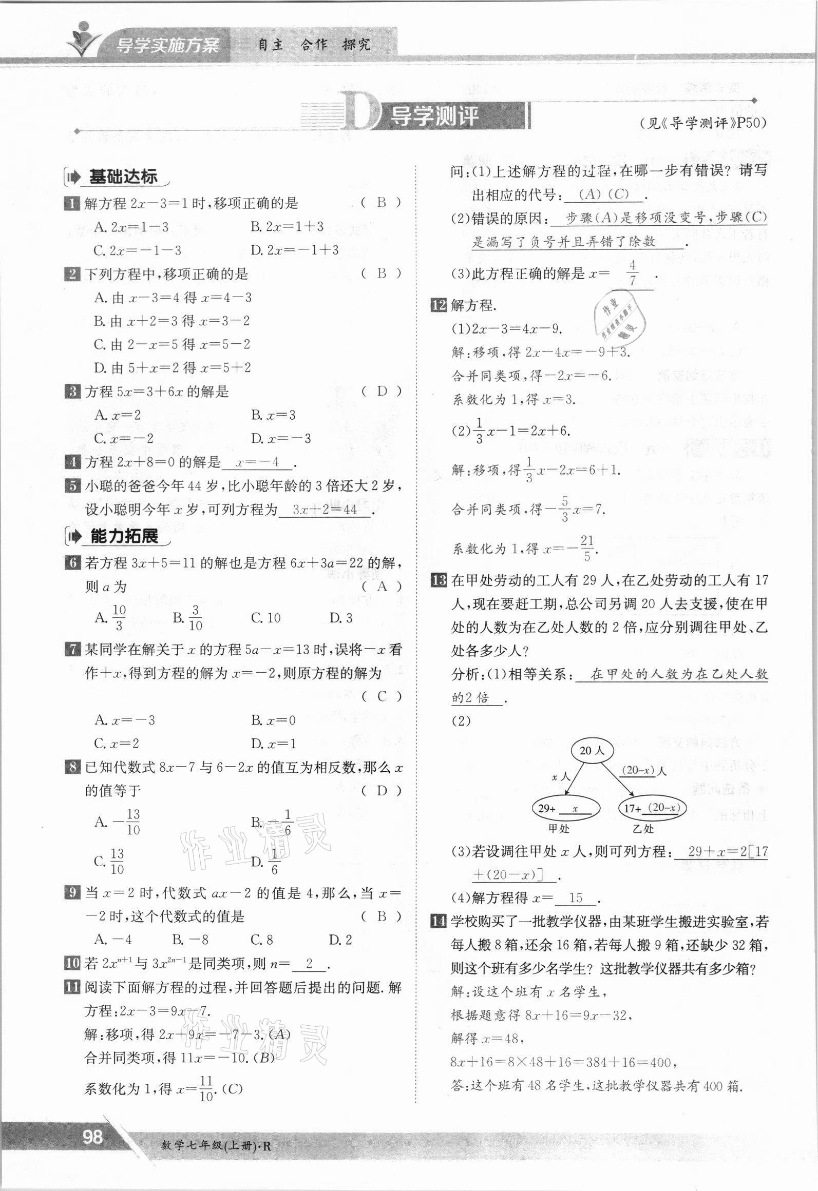 注:目前有些书本章节名称可能整理的还不是很完善,但都是按照顺序排列的,请同学们按照顺序仔细查找。练习册 2021年金太阳导学测评七年级数学上册人教版 答案主要是用来给同学们做完题方便对答案用的,请勿直接抄袭。