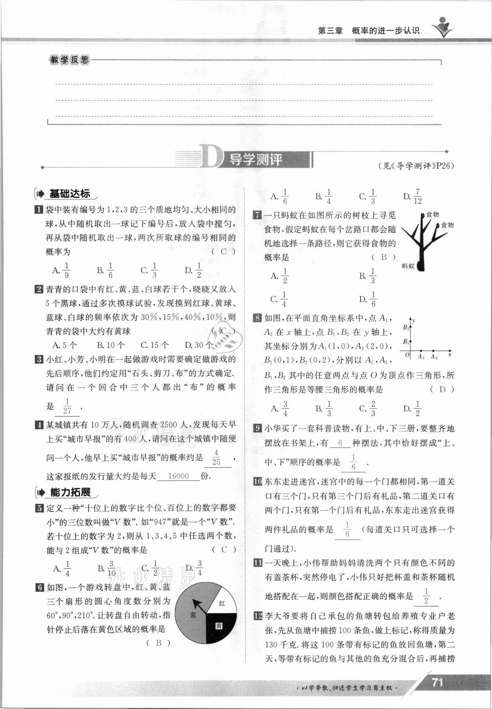 注:目前有些书本章节名称可能整理的还不是很完善,但都是按照顺序排列的,请同学们按照顺序仔细查找。练习册 2021年金太阳导学测评九年级数学全一册北师大版 答案主要是用来给同学们做完题方便对答案用的,请勿直接抄袭。