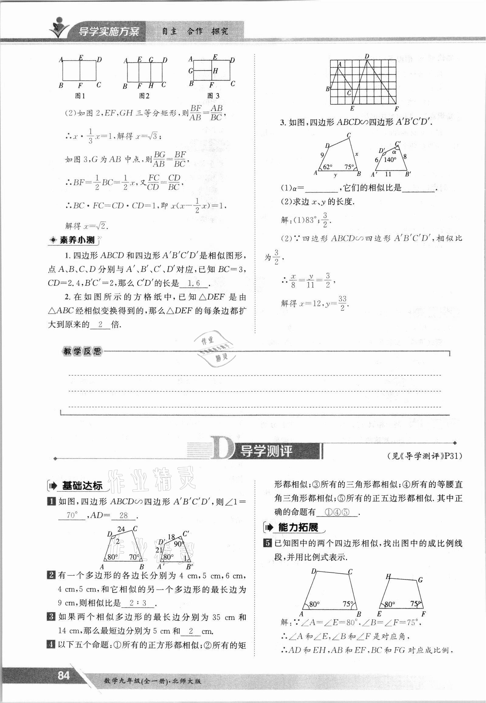 注:目前有些书本章节名称可能整理的还不是很完善,但都是按照顺序排列的,请同学们按照顺序仔细查找。练习册 2021年金太阳导学测评九年级数学全一册北师大版 答案主要是用来给同学们做完题方便对答案用的,请勿直接抄袭。