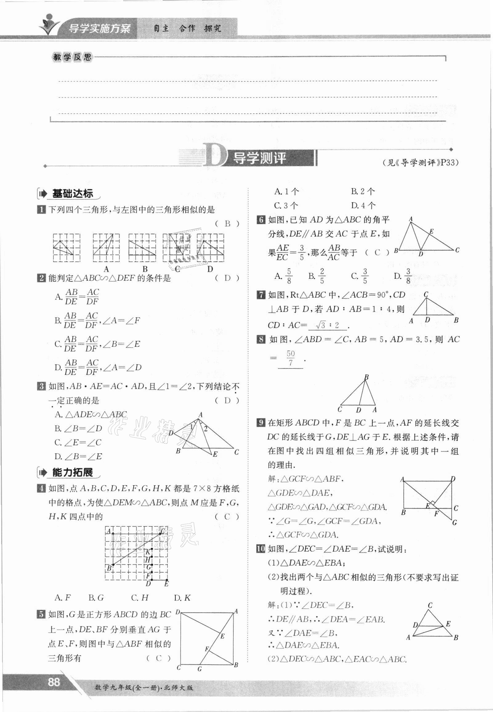注:目前有些书本章节名称可能整理的还不是很完善,但都是按照顺序排列的,请同学们按照顺序仔细查找。练习册 2021年金太阳导学测评九年级数学全一册北师大版 答案主要是用来给同学们做完题方便对答案用的,请勿直接抄袭。