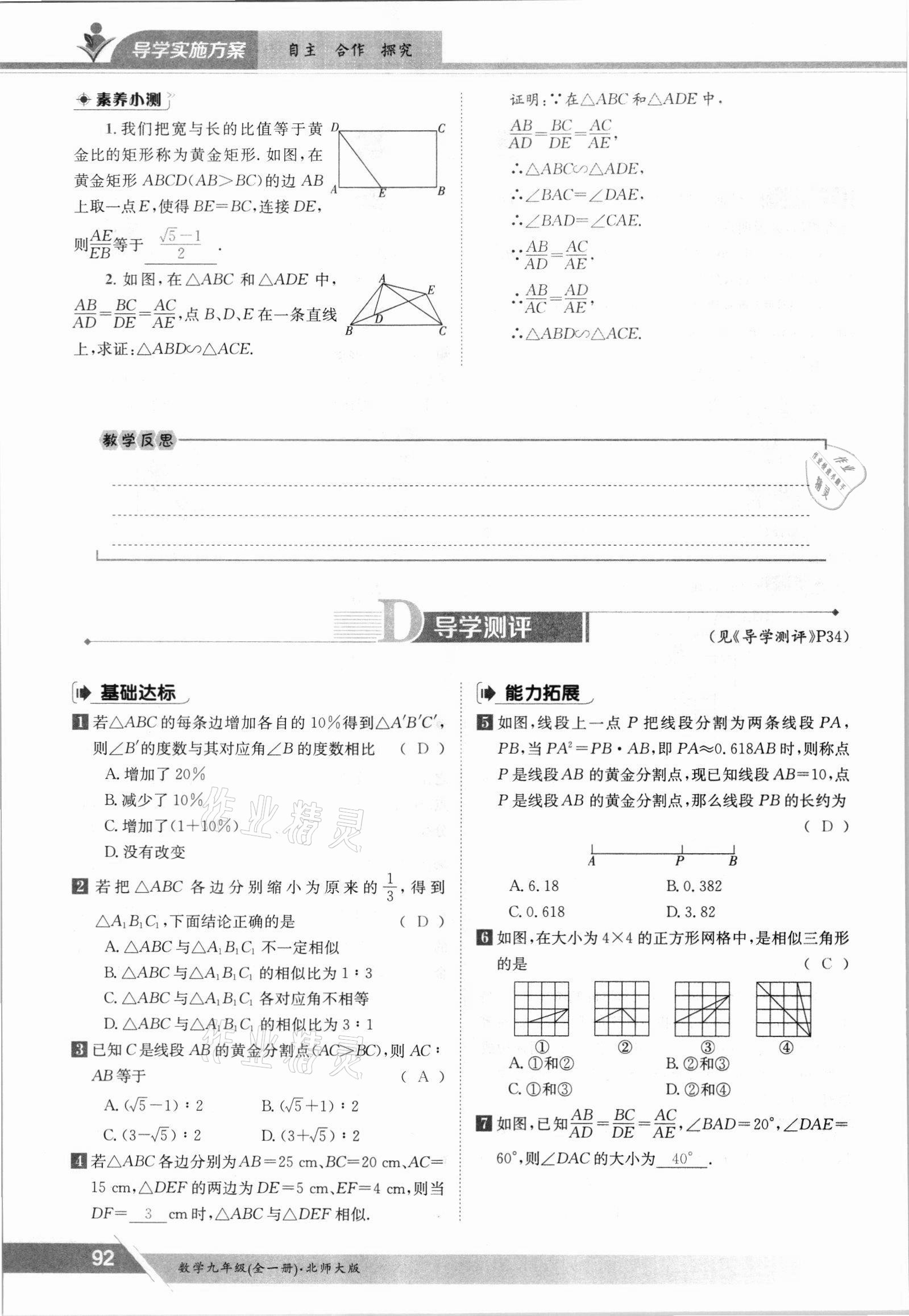 注:目前有些书本章节名称可能整理的还不是很完善,但都是按照顺序排列的,请同学们按照顺序仔细查找。练习册 2021年金太阳导学测评九年级数学全一册北师大版 答案主要是用来给同学们做完题方便对答案用的,请勿直接抄袭。