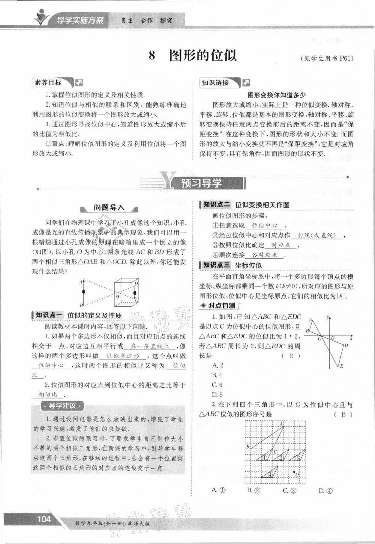 注:目前有些书本章节名称可能整理的还不是很完善,但都是按照顺序排列的,请同学们按照顺序仔细查找。练习册 2021年金太阳导学测评九年级数学全一册北师大版 答案主要是用来给同学们做完题方便对答案用的,请勿直接抄袭。