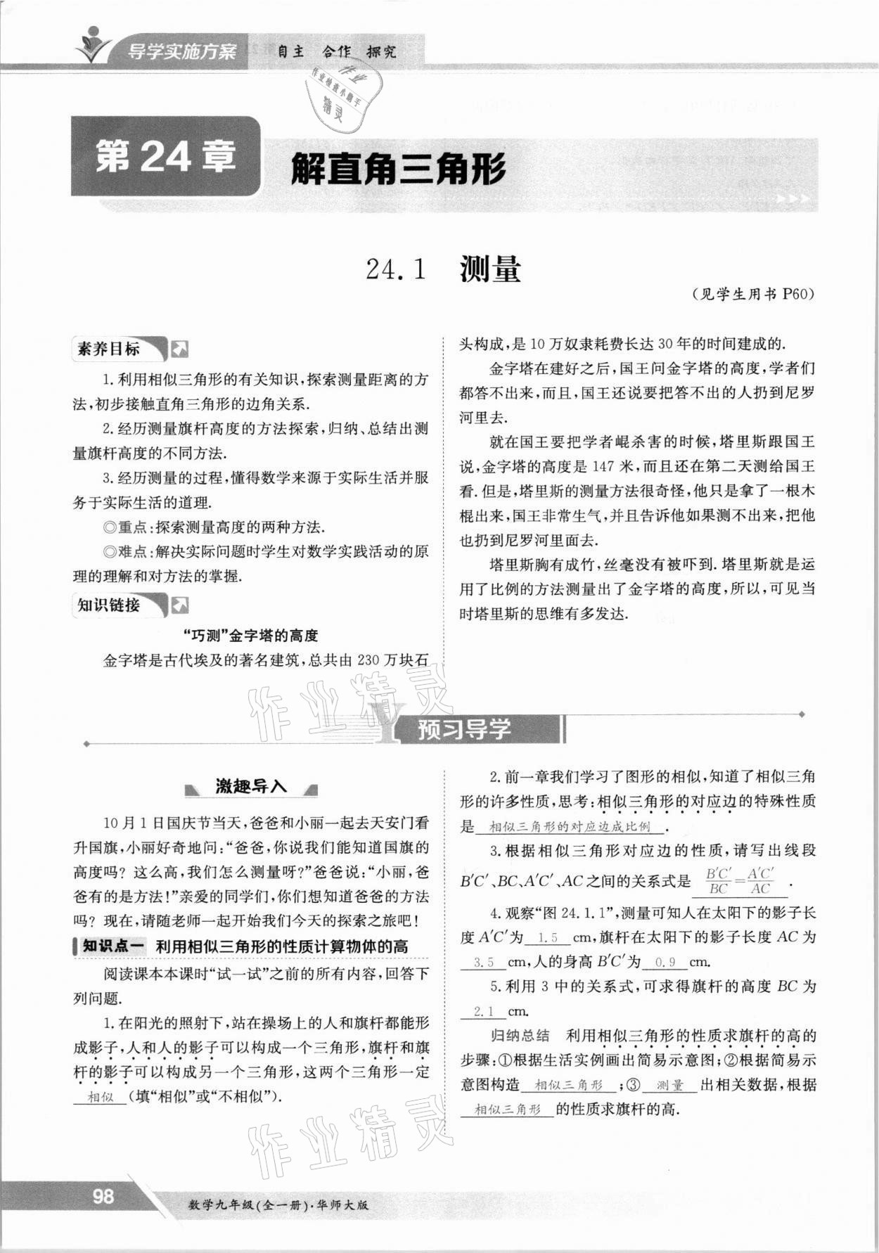 2021年金太阳导学测评九年级数学全一册华师大版